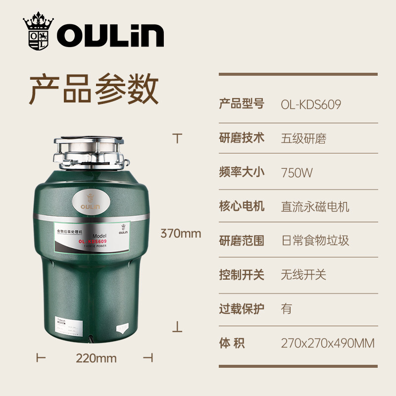 【吉杰年货节】欧琳厨房垃圾处理器KDS609水联动全自动进水厨余
