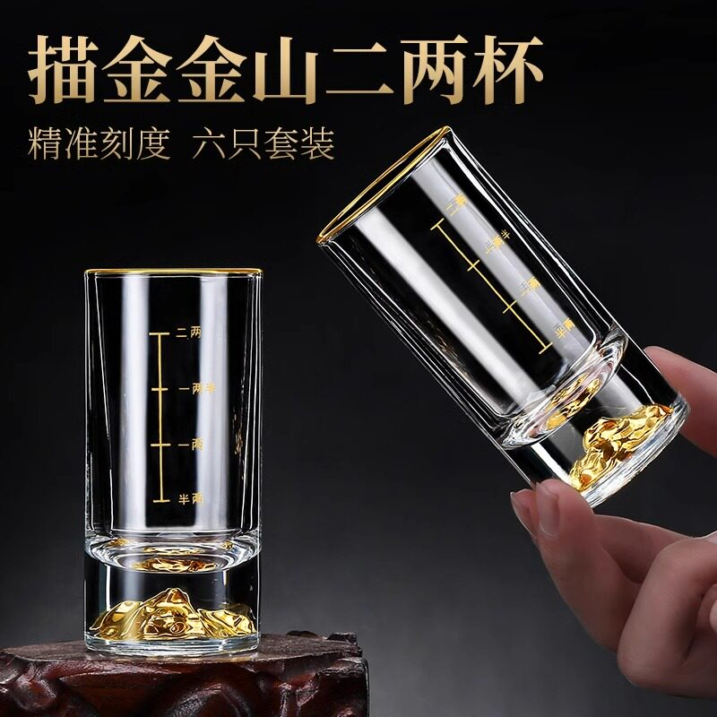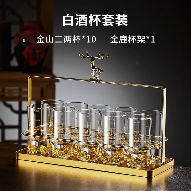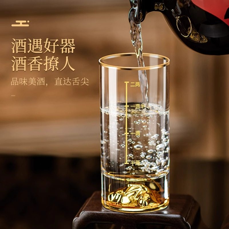 金山二两白酒杯套装家用创意金箔酒壶水晶分酒器带刻度轻奢酒具