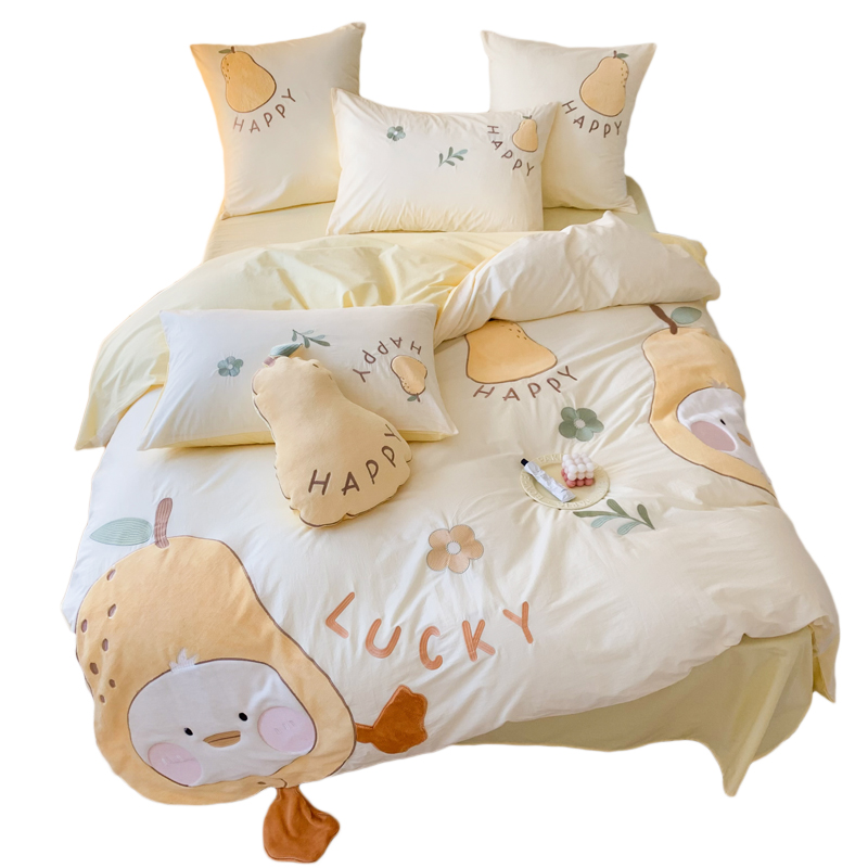 卡通可爱100水洗棉四件套儿童全棉被套少女心公主风床上用品4