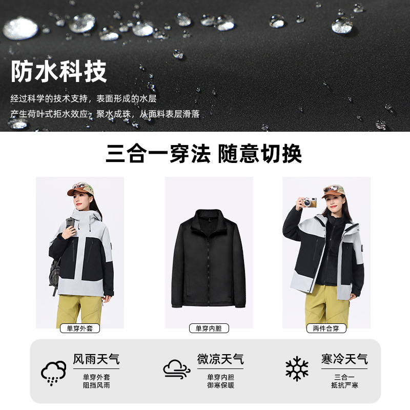 真国标冲锋衣三合一男女两件套全缝压胶可脱卸防风防水户外登山服