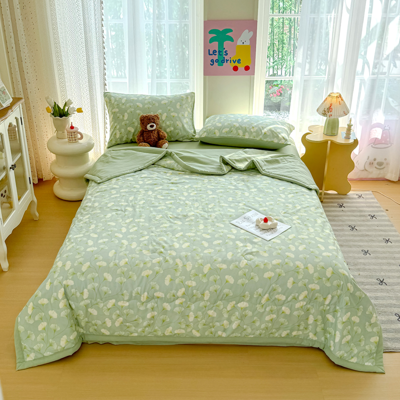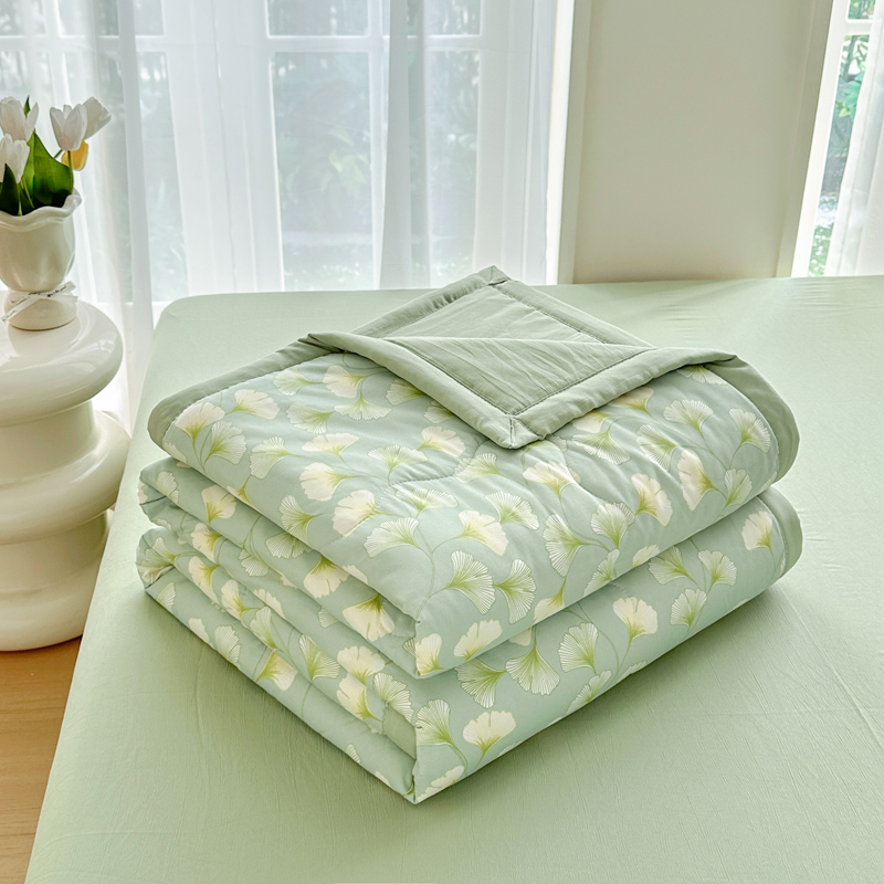 A类绿色小碎花双层纱夏凉被夏季可机洗夏被轻薄被子可水洗空调被