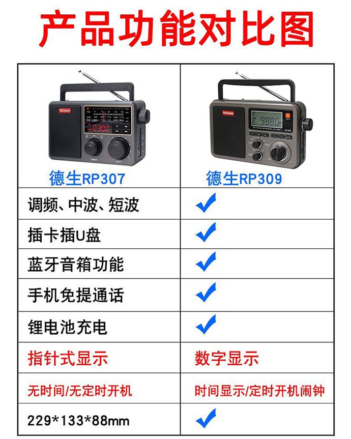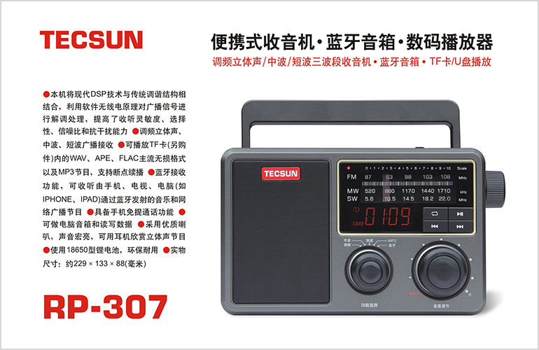 德生 RP-307便携式DSP插卡MP3蓝牙收音机新款充电数码电脑音箱U盘