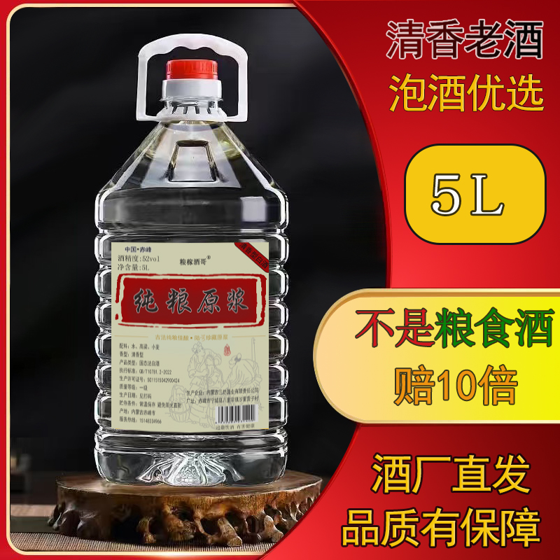 【买5送1】纯粮白酒清香型52度60度68度高粱粮食酒桶装散白酒泡酒