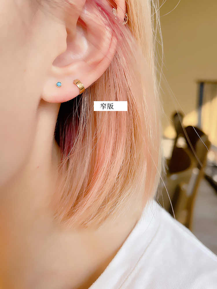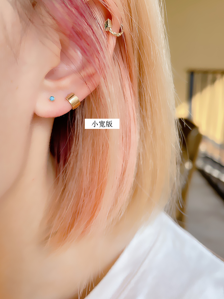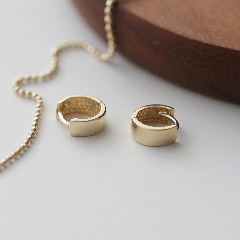白小C黄金首饰14K10K金耳钉耳饰光面素圈素金宽版耳骨耳环小耳圈