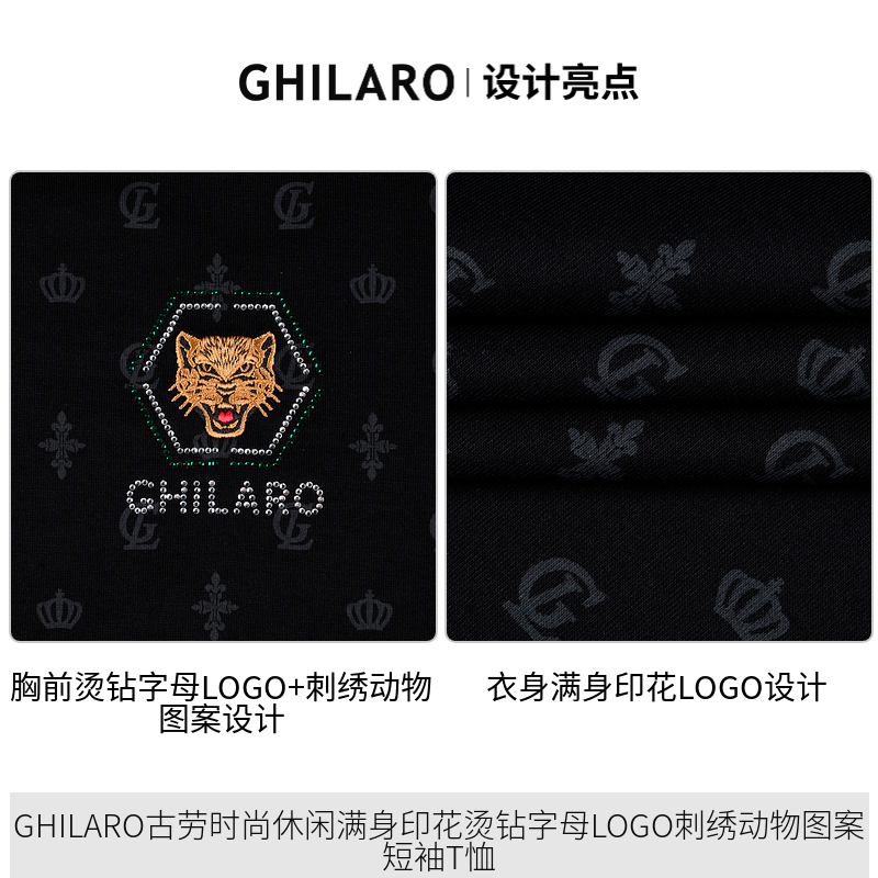 雷迪波尔旗下潮牌古劳吉那诺2025夏季新款印花纯棉圆领短袖T恤男