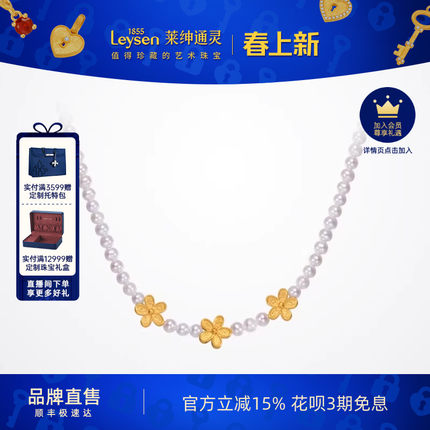 莱绅通灵珠宝 桃花灼灼 足金黄金淡水珍珠项链小米珠花型串珠项链