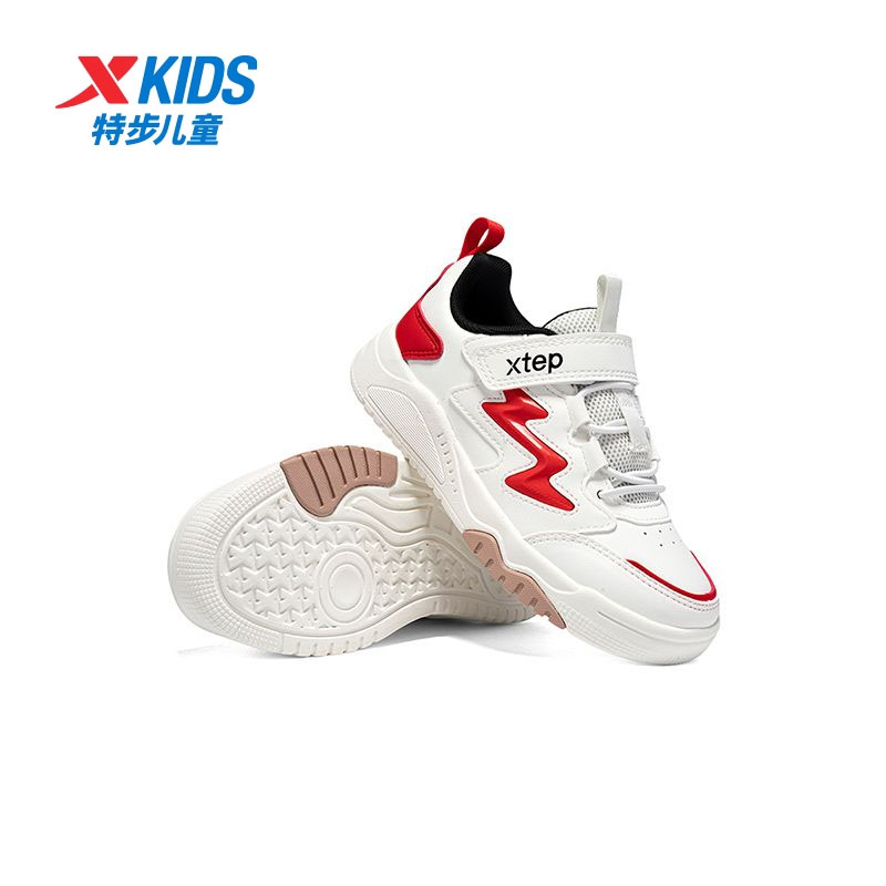 特步少年儿童板鞋男小童2025冬季新款皮面运动休闲鞋675415313007