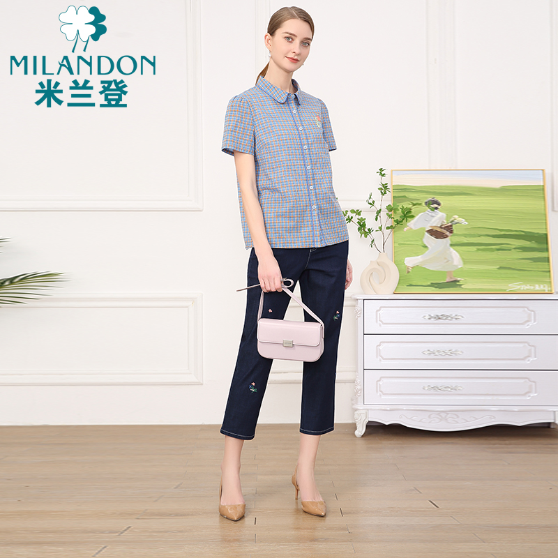 米兰登妈妈装休闲短袖衬衫