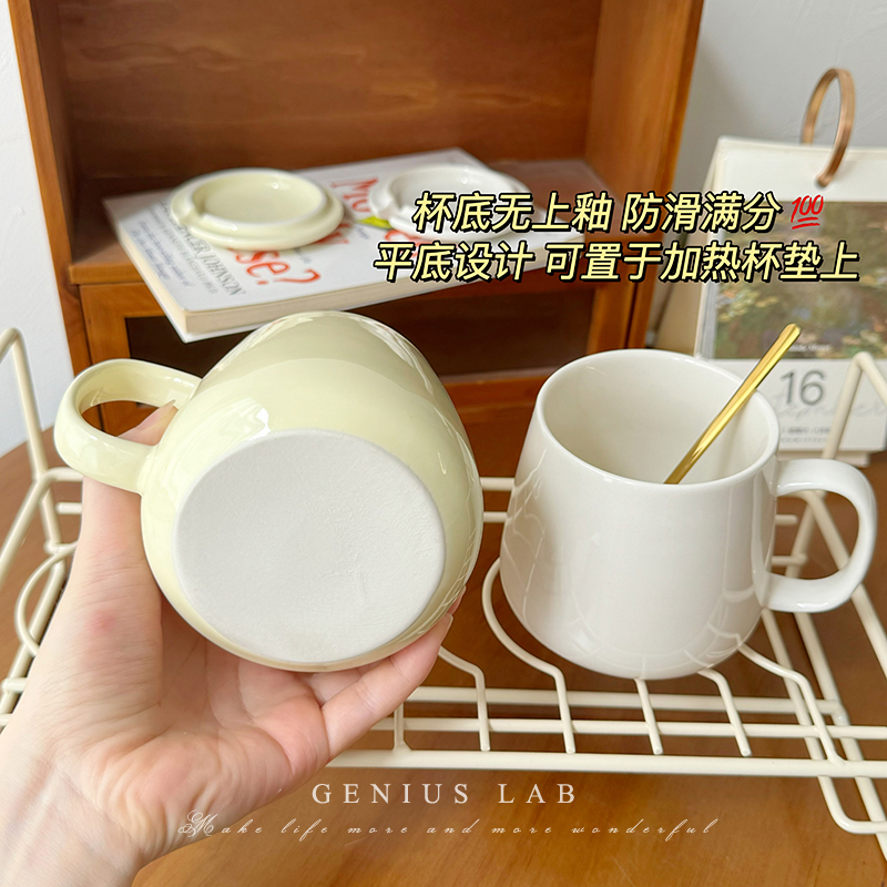 釉下彩平底家用马克杯陶瓷杯子带盖带勺高颜值办公室喝水杯大容量
