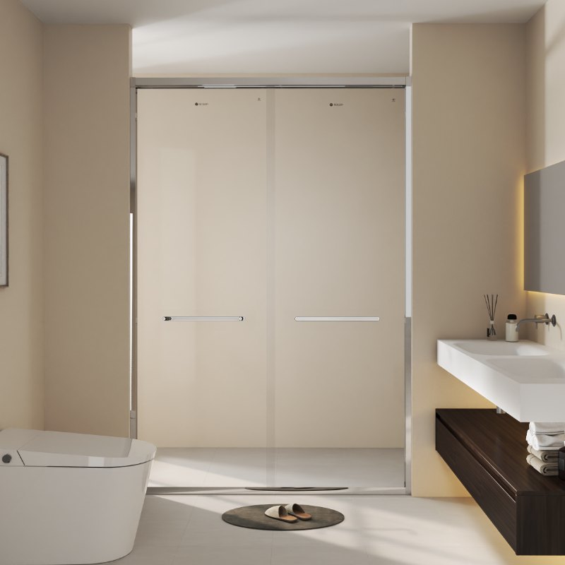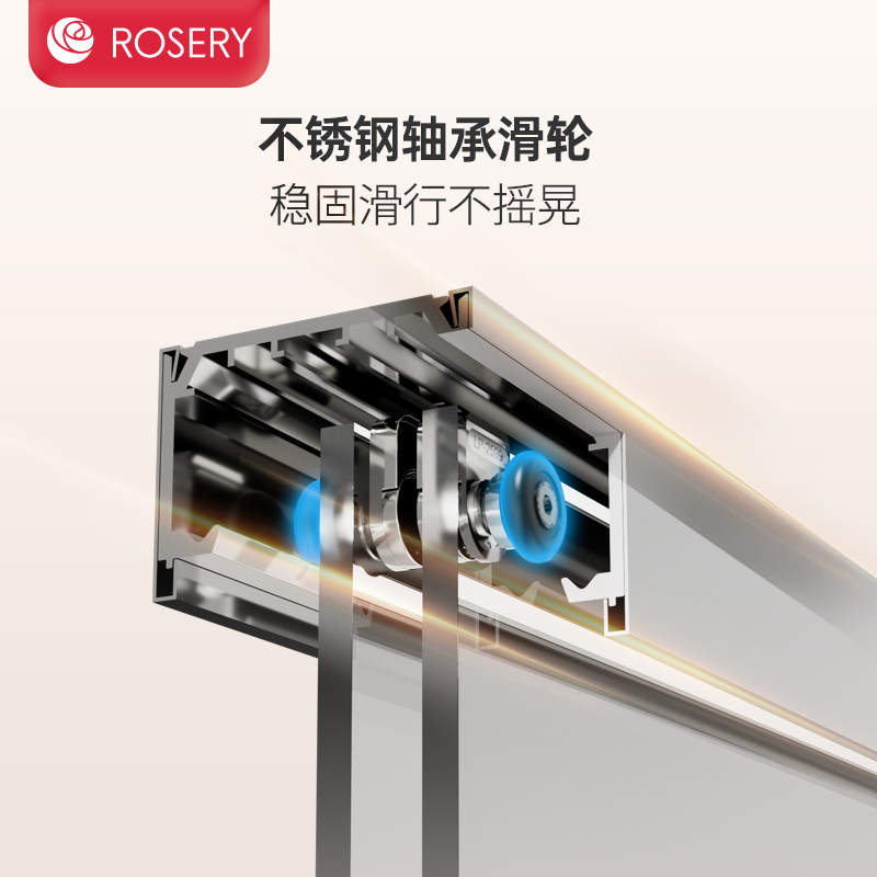 玫瑰岛一字型淋浴房双移门不锈钢干湿分离玻璃移门隔断定制D21
