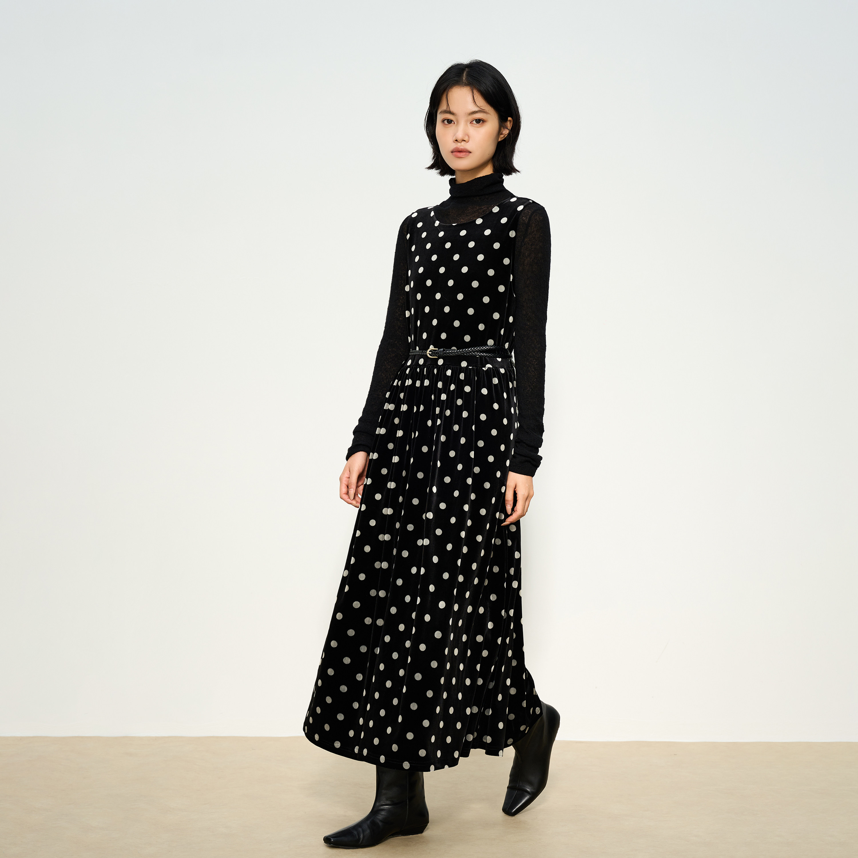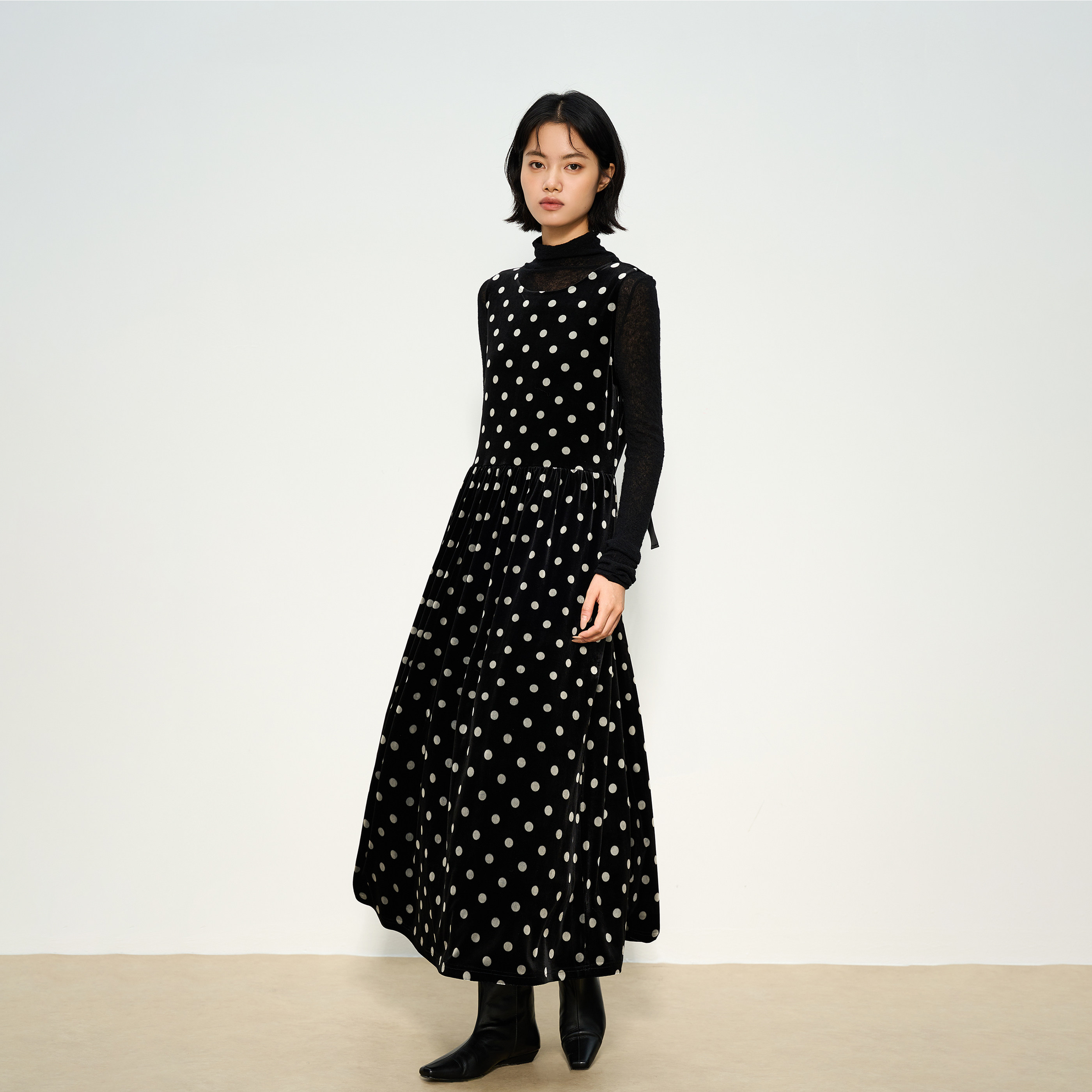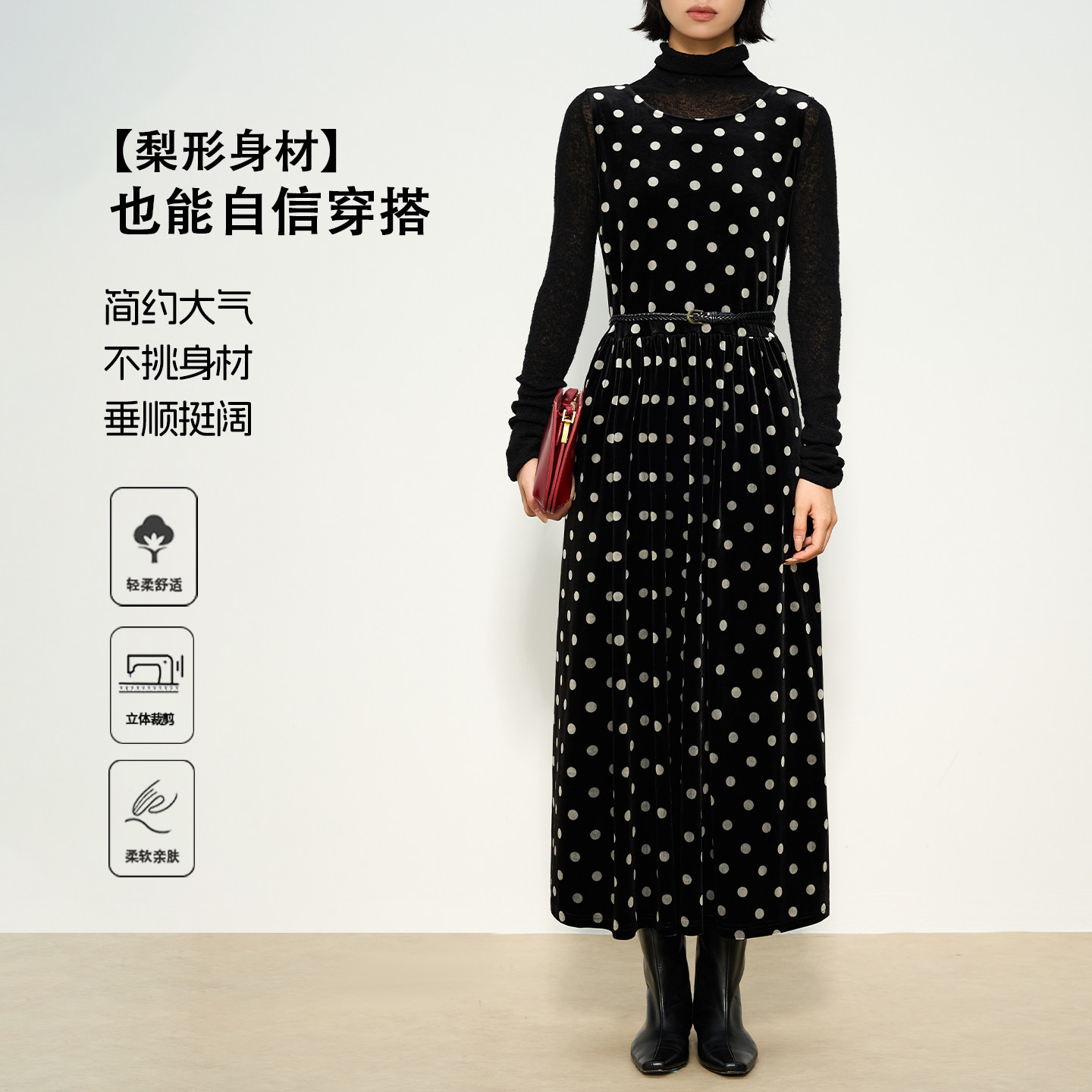 张小某黑色波点连衣裙女春季