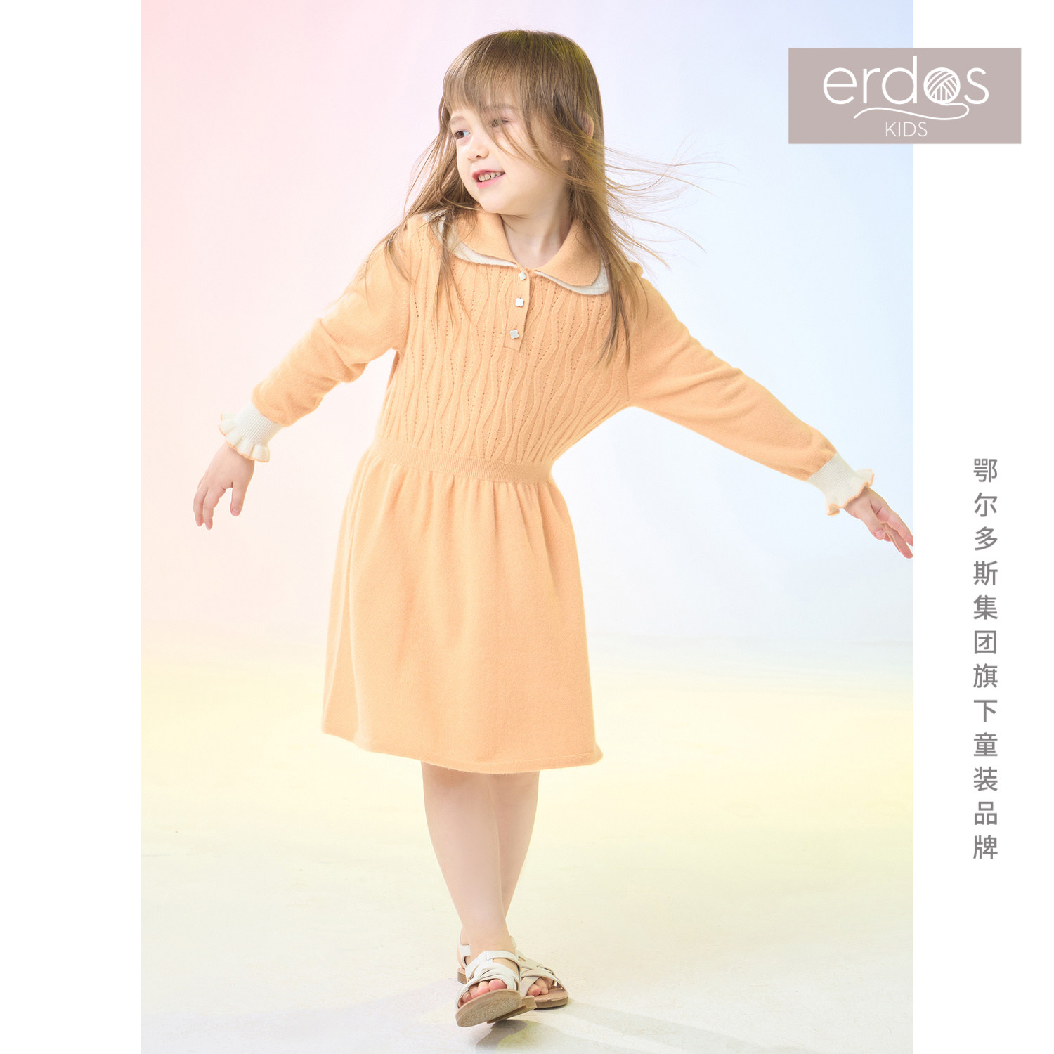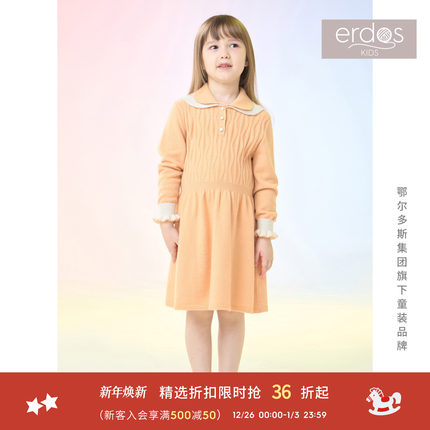春夏女中大童双层假领撞色羊绒连衣裙 erdosKIDS鄂尔多斯童装