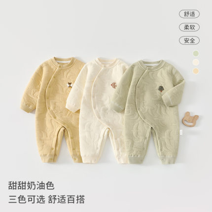 婴儿连体衣秋冬季保暖空气层哈衣婴幼儿居家爬服连体夹棉保暖衣服