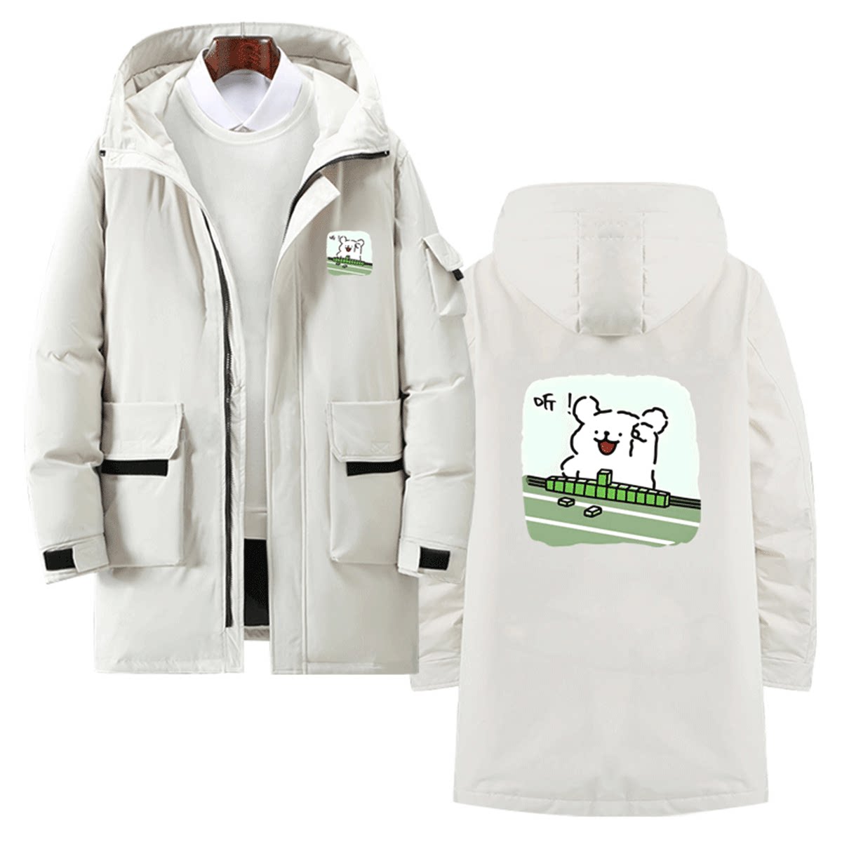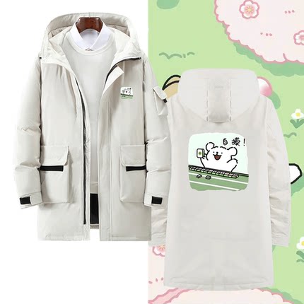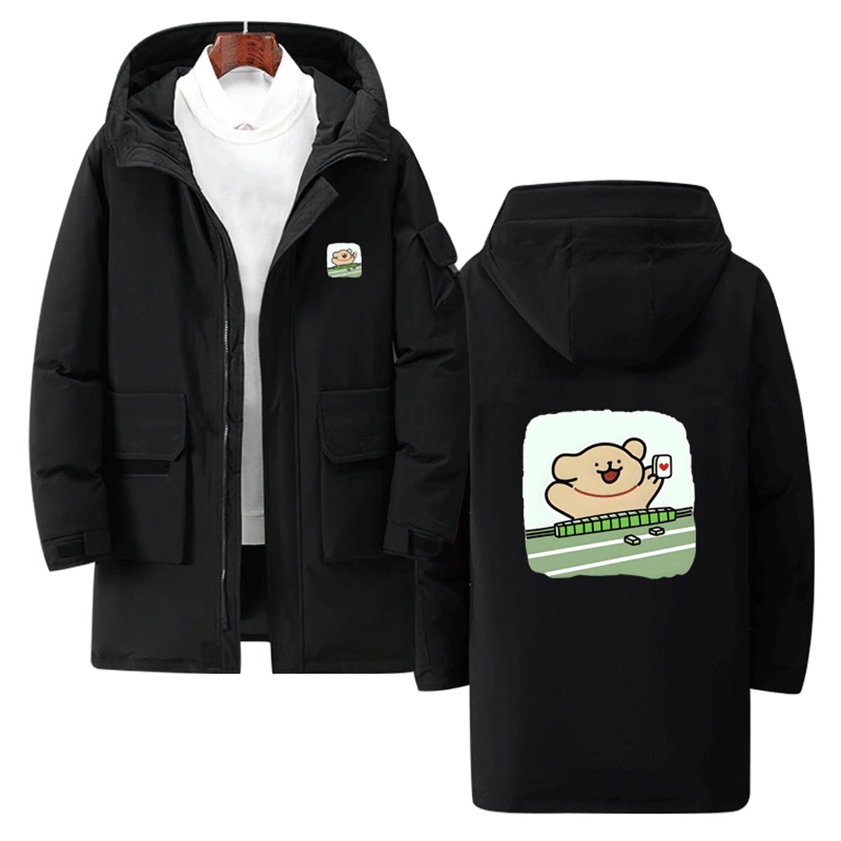 马尔济斯线条小狗麻将周边男女情侣秋冬定制中长款百搭时尚羽绒服