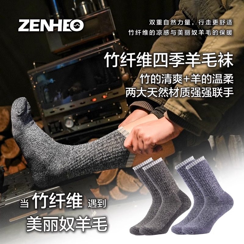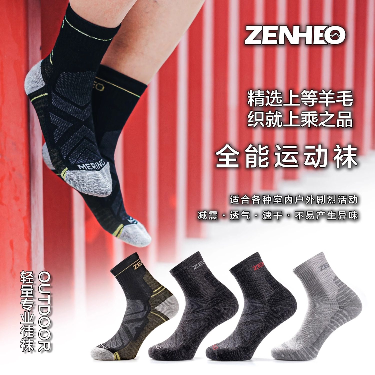 卓赫ZENHEO户外男女冬季保暖徒步滑雪登山专业美利奴羊毛运动袜