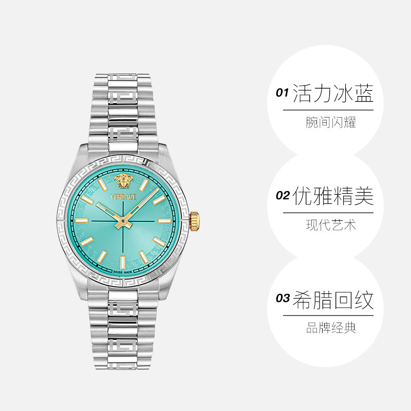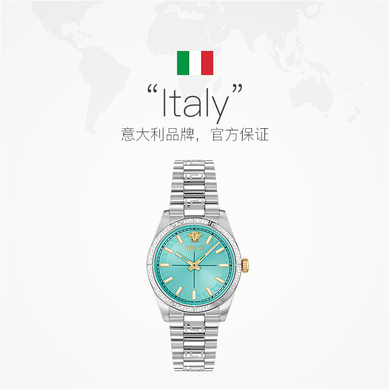 【自营】VERSACE/范思哲手表女新款绿色钢带女表简约时尚腕表送礼