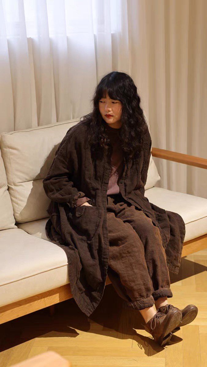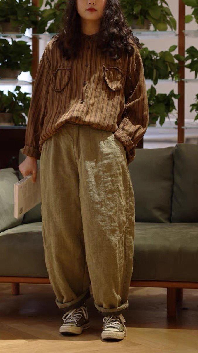 沉香布衣草堂 衣路走来 亚麻面料做旧麻裤 26583多色休闲裤a