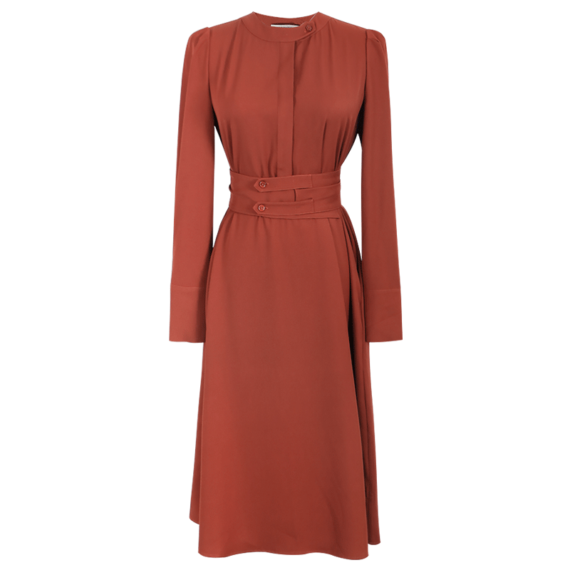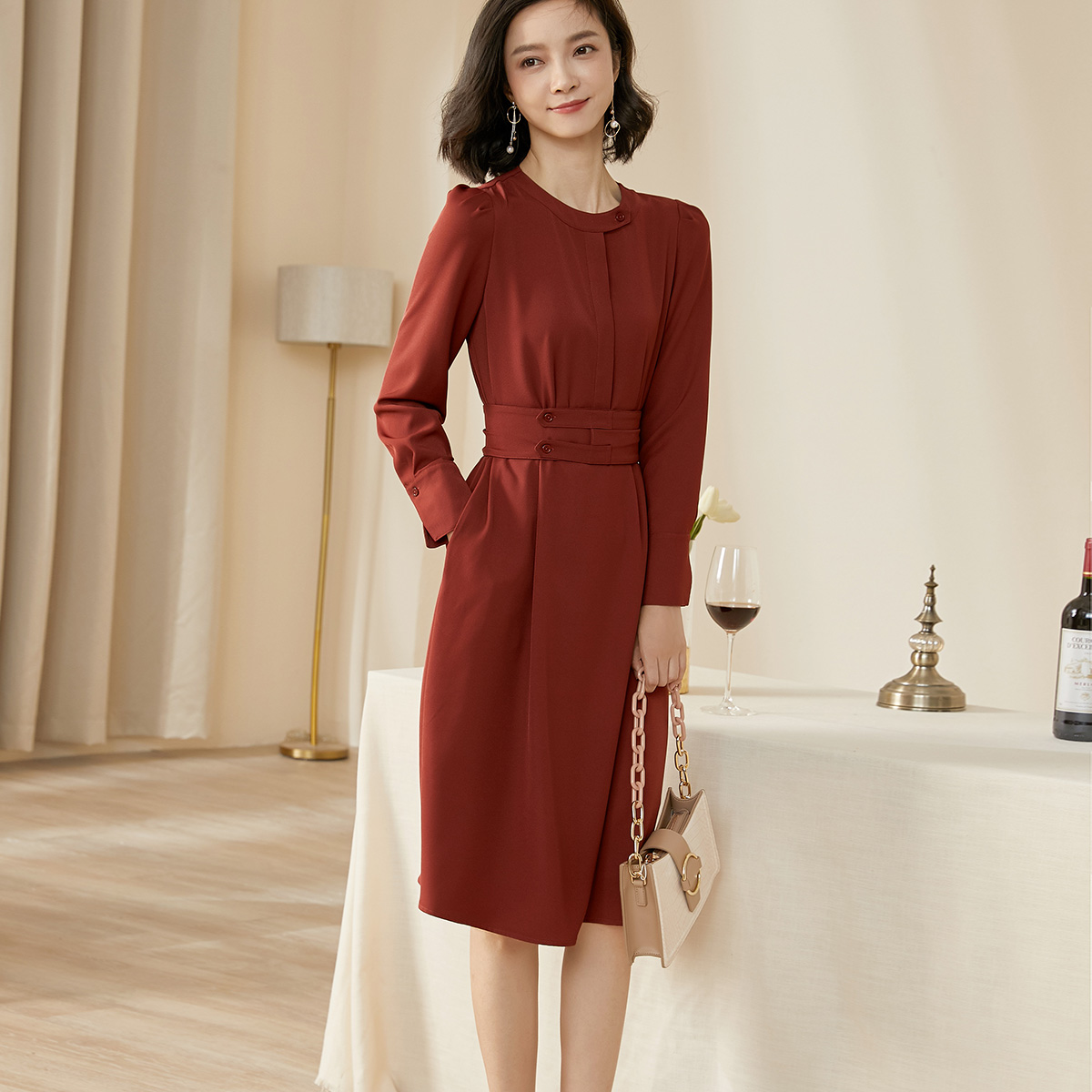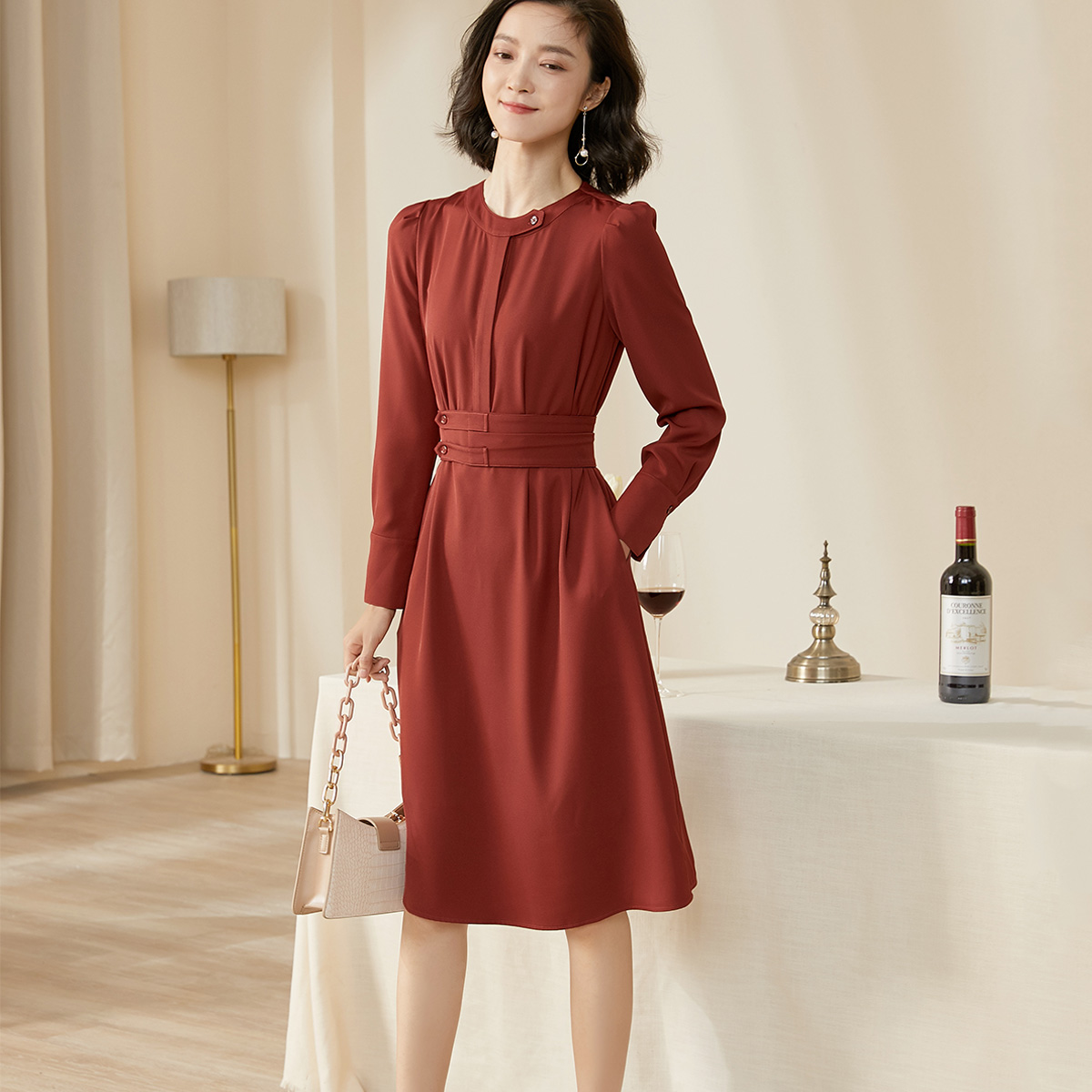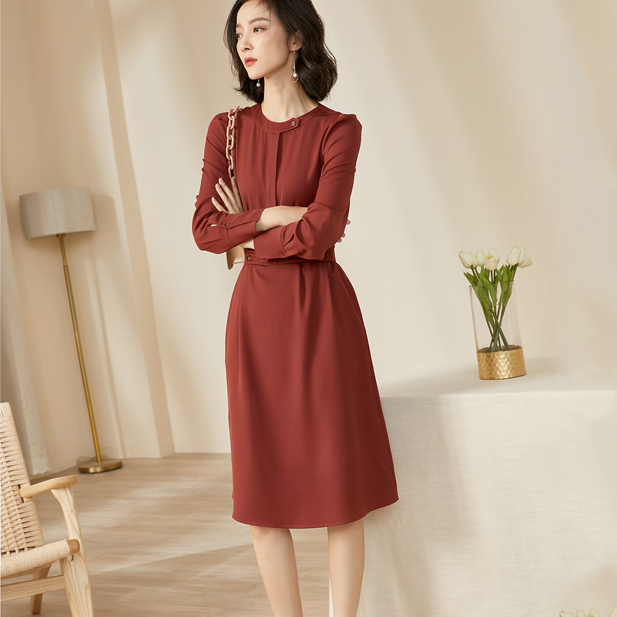 米思阳2025秋季新款时尚气质复古中长款收腰显瘦长袖连衣裙女5706