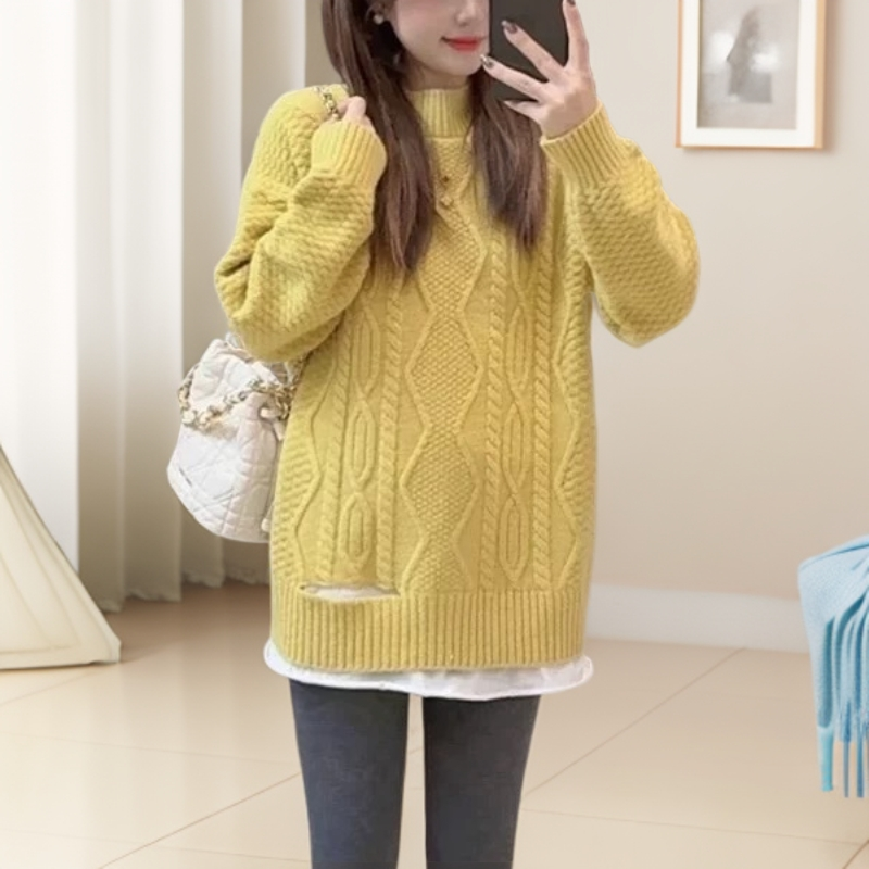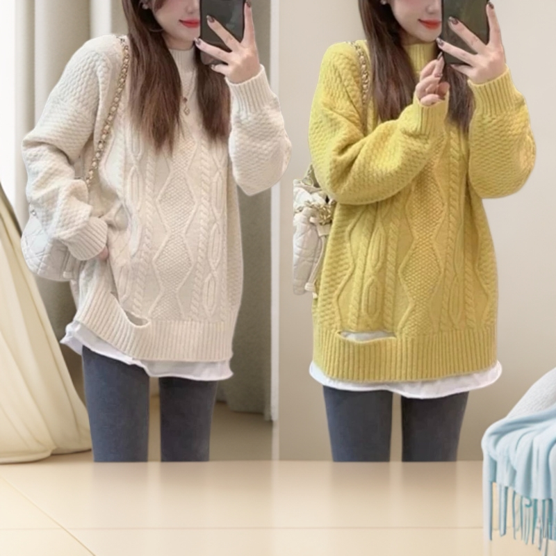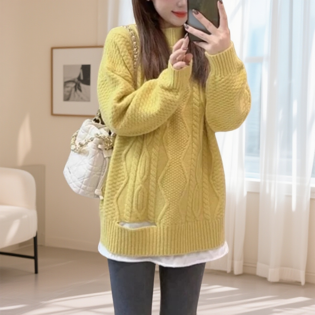 慵懒风加厚菱格复古套头针织上衣