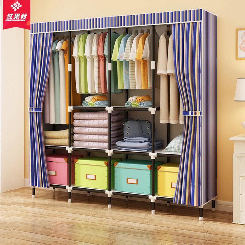 红果村布艺钢管钢架加粗加厚加固单人组装帆布牛津布衣橱