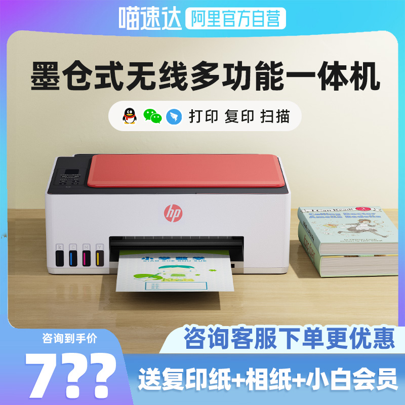 惠普599彩色连供墨仓式打印机复印扫描一体机家用小型学生家庭可连手机无线办公专用 政府补贴596