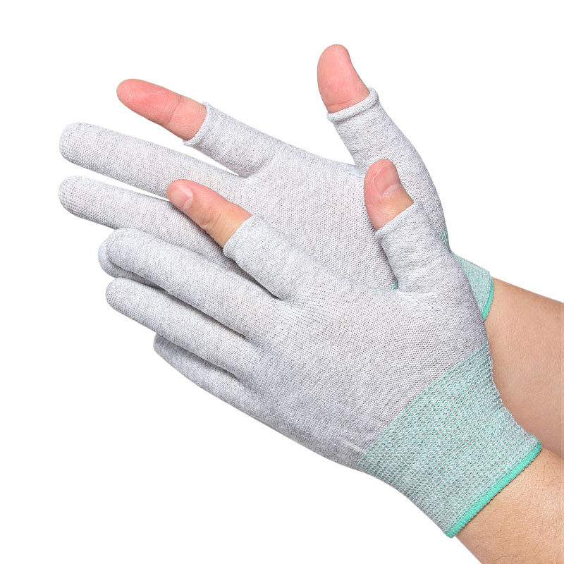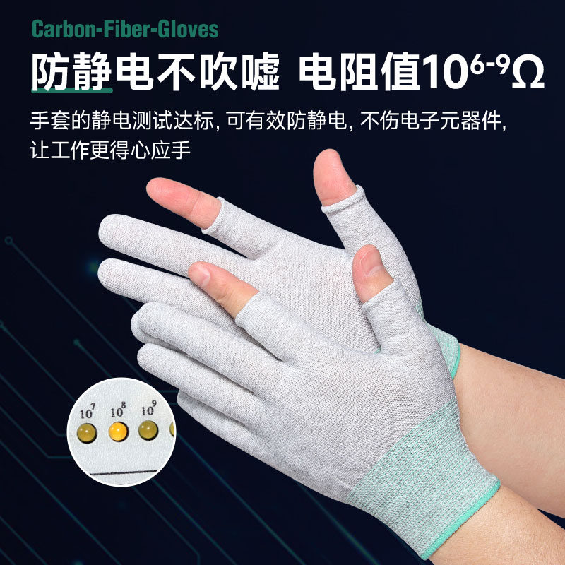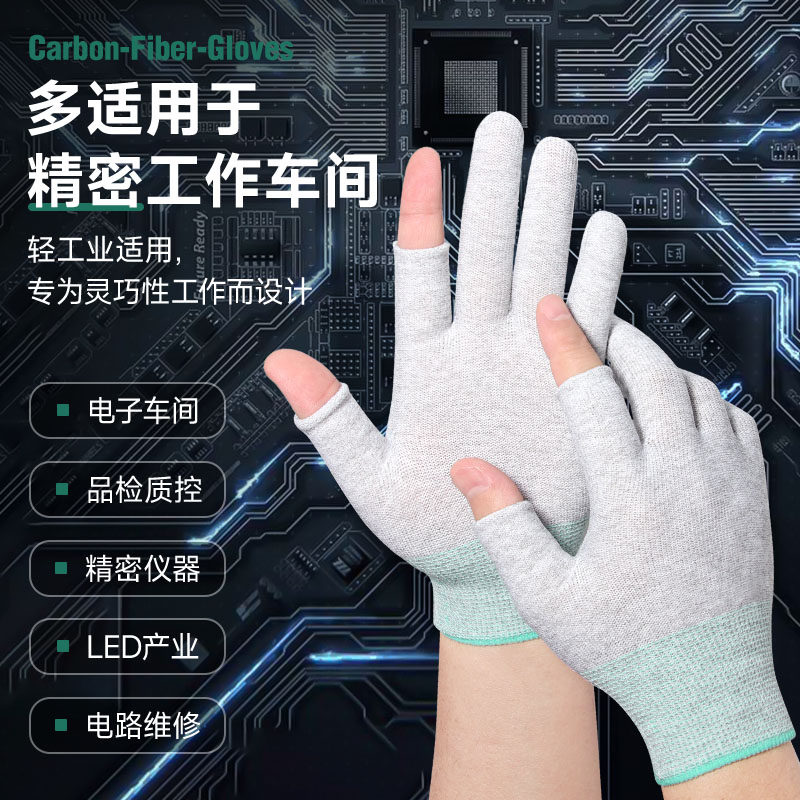 碳纤维露二指防静电手套劳保工作耐磨防滑透气薄款电子无尘组装用