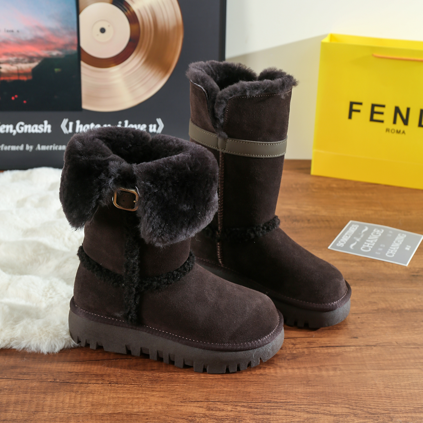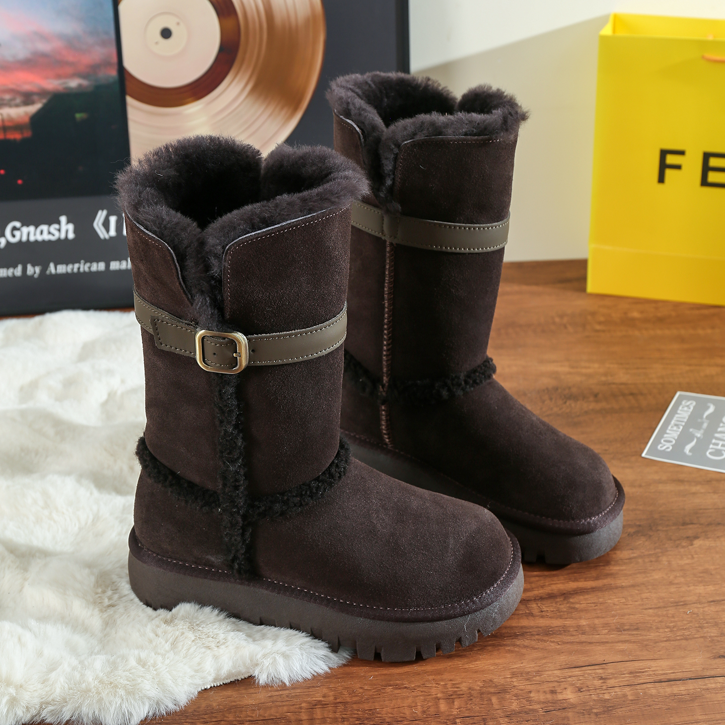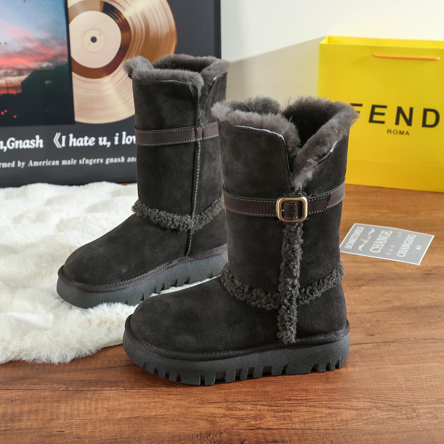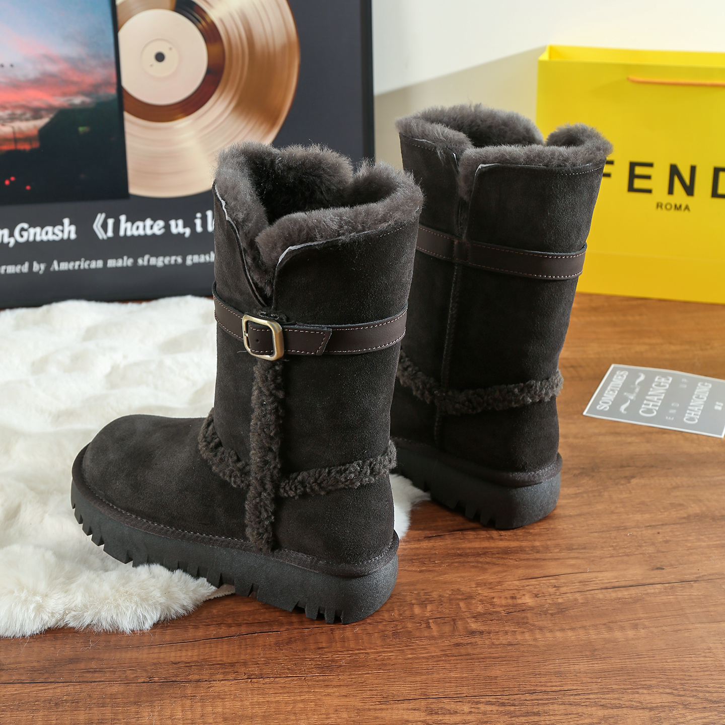防寒雪地靴女中筒羊毛靴女冬季新款2025年皮毛一体靴加厚保暖棉鞋