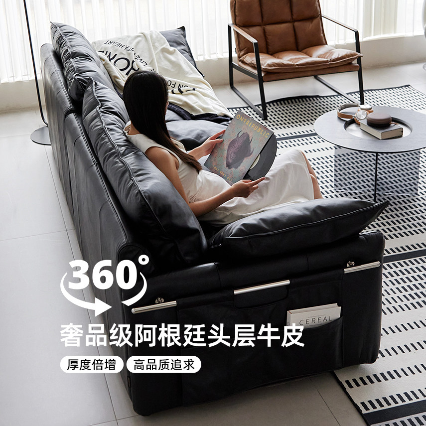 苯胺皮全真皮赫本沙发意式轻奢