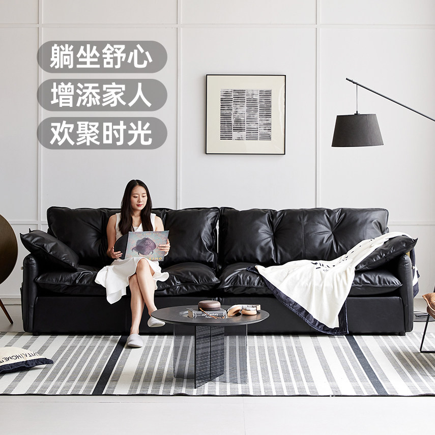赫本黑色全真皮沙发意式极简落地直排客厅家用大户型高端头层牛皮