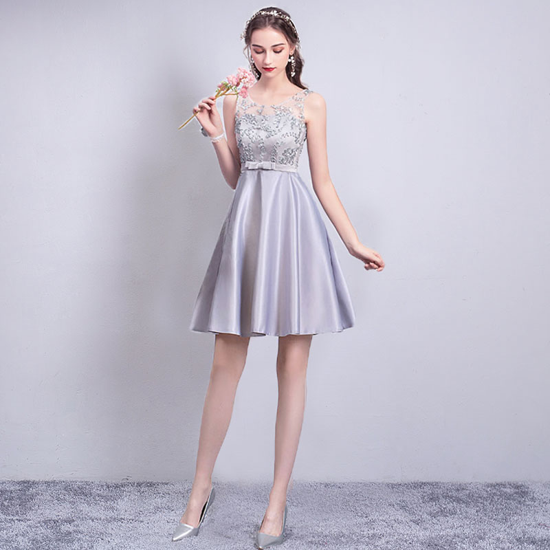 伴娘服短款灰色2021新款缎面伴娘团礼服姐妹裙敬酒服毕业晚礼服春