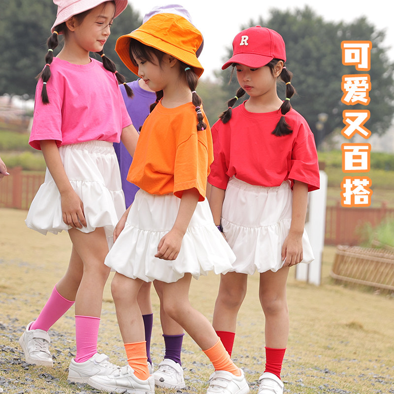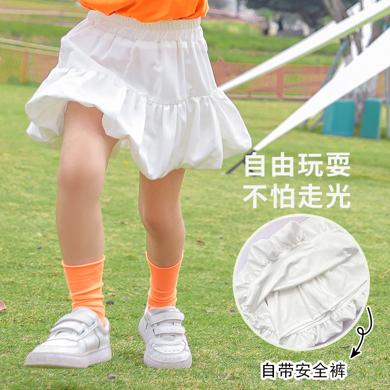 中大童女童白色裙子半身裙放走光蓬蓬裙小学生泡泡裙薄款夏季纯色