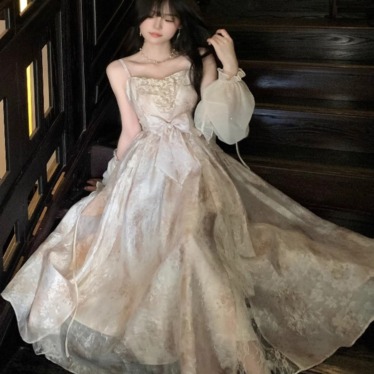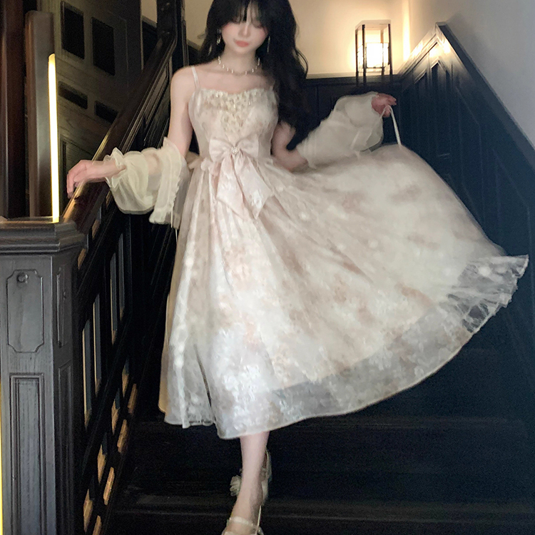 温柔甜美高级感碎花显瘦仙女蕾丝吊带连衣裙子开衫两件套装女夏季