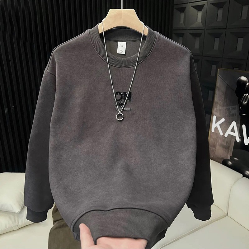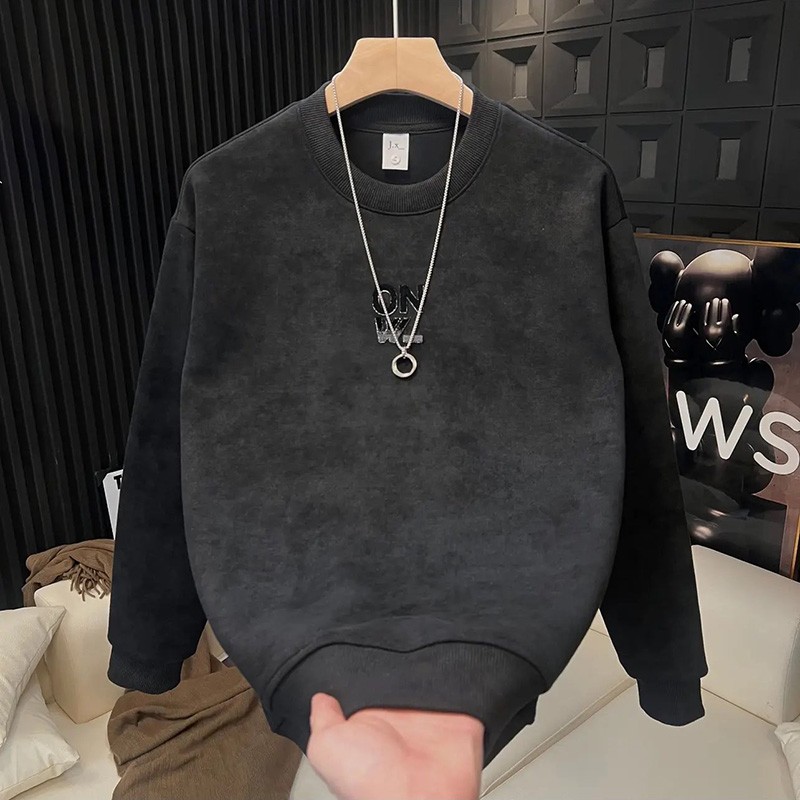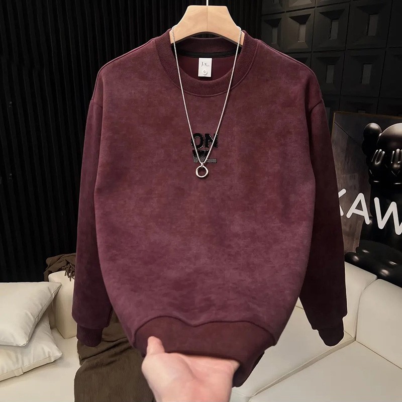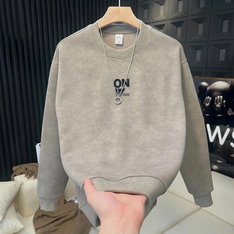 新款男士圆领长袖卫衣时尚潮流休闲百搭体恤衫拼接晕染脏脏打底衫