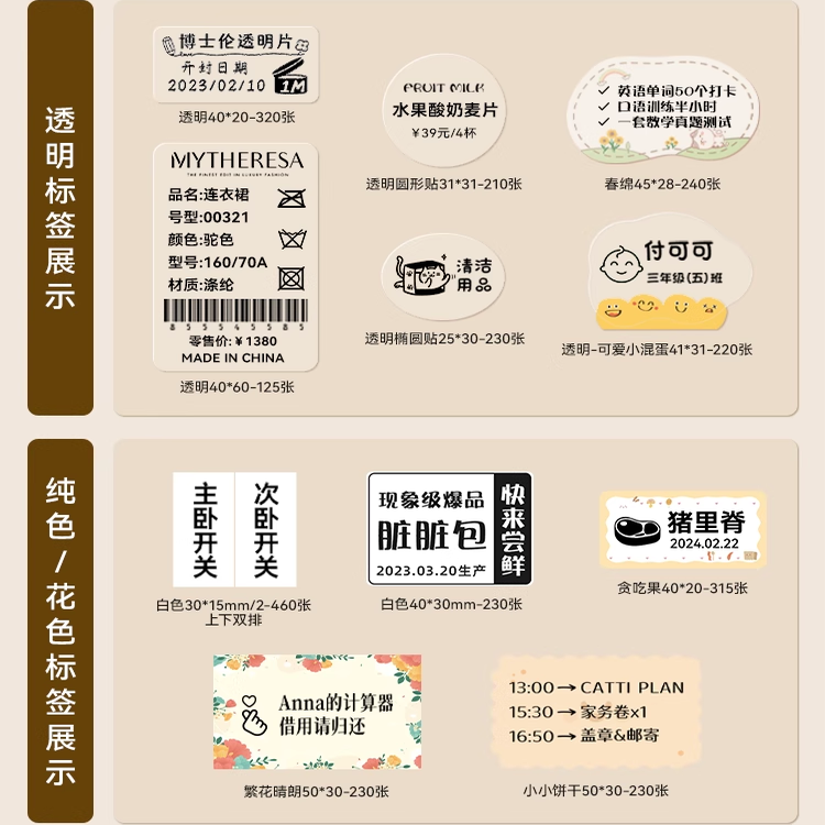 精臣B1/B21/B3S/B31/B4透明标签纸热敏不干胶贴纸夜光防水卡通姓名贴精诚云打印小型niimbot标签机打印纸