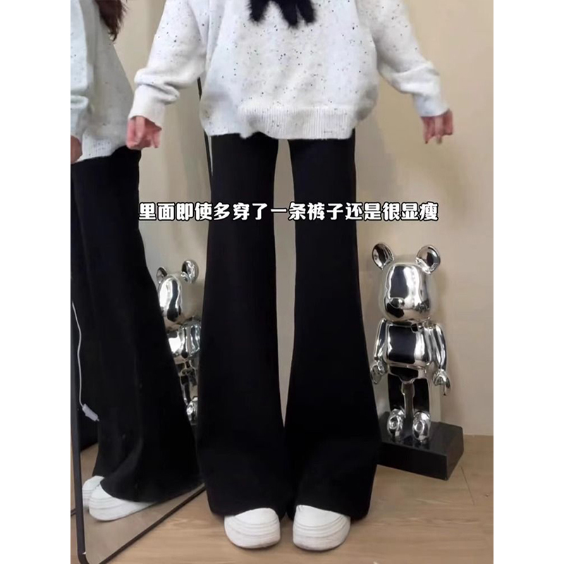 300斤大码胖mm黑色加绒加厚牛仔裤女冬季保暖裤子弹力微喇马蹄裤