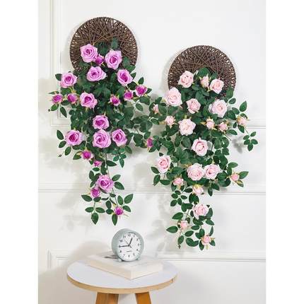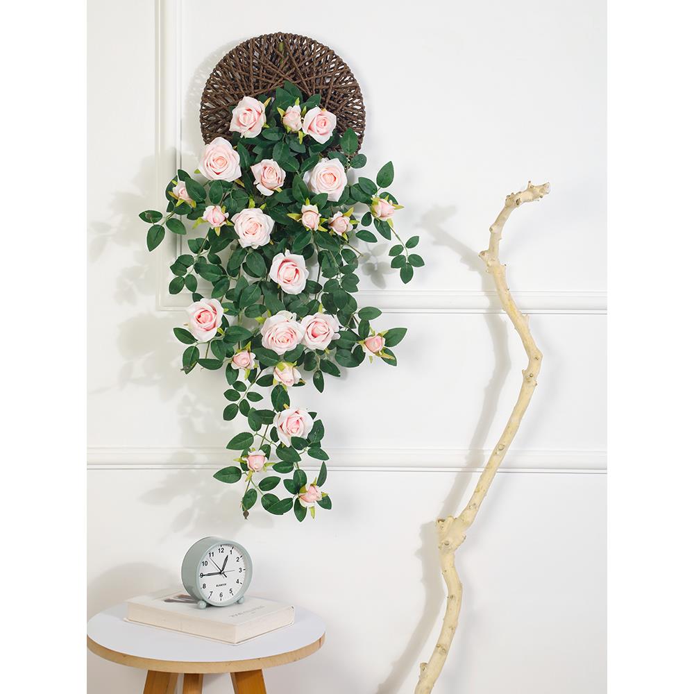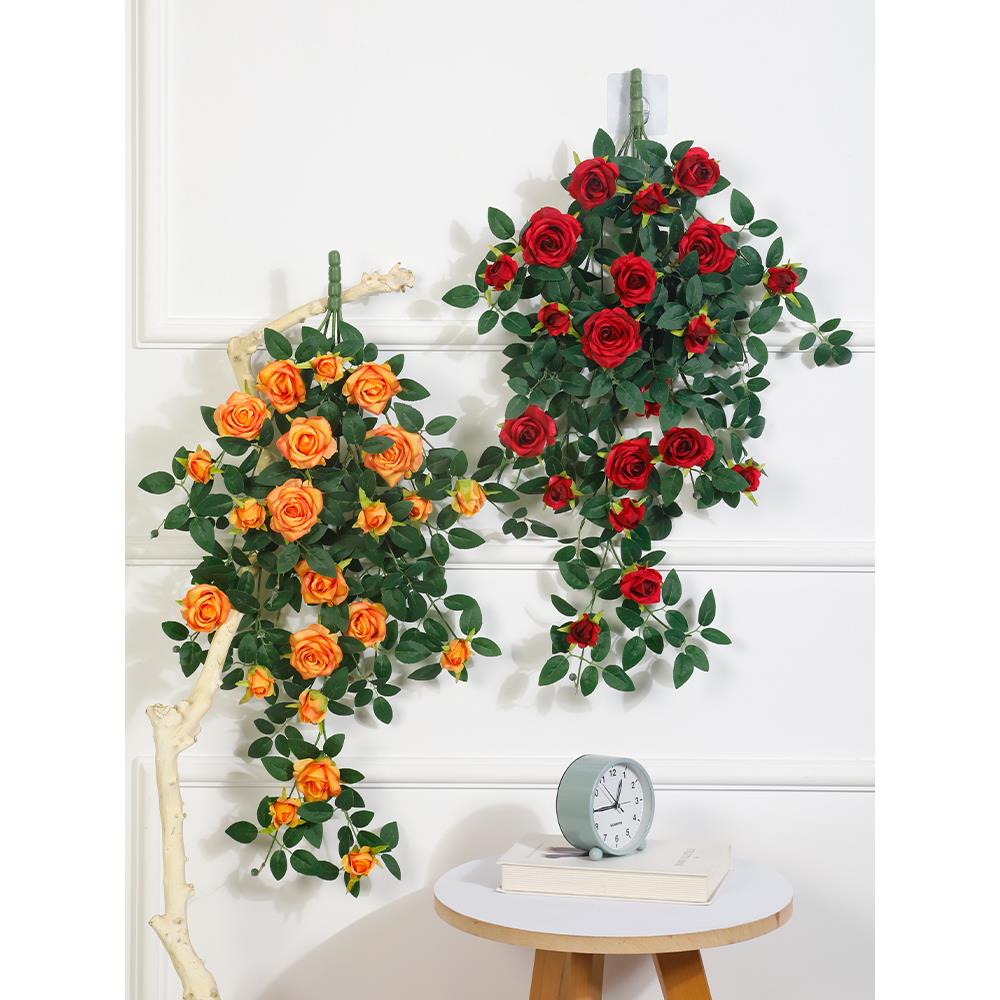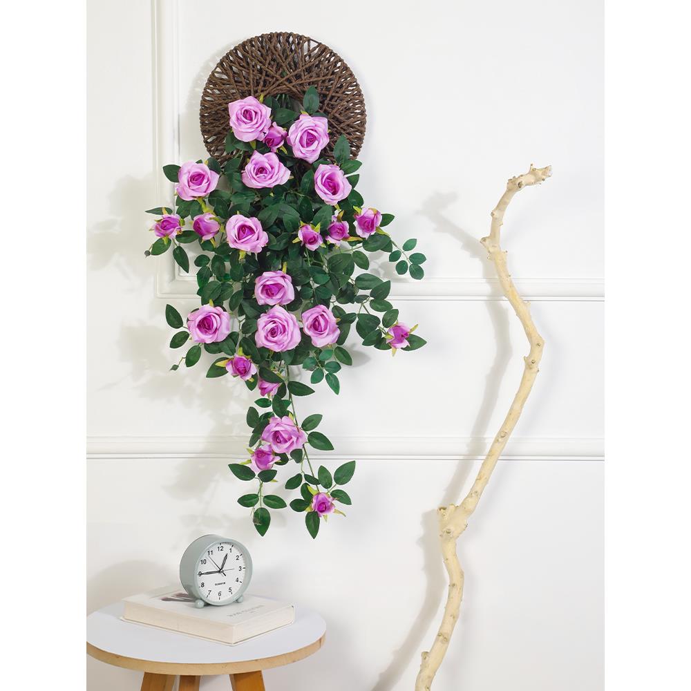 仿真玫瑰花墙面吊花假花藤蔓吊篮摆设吊兰绿植塑料壁挂花装饰植物