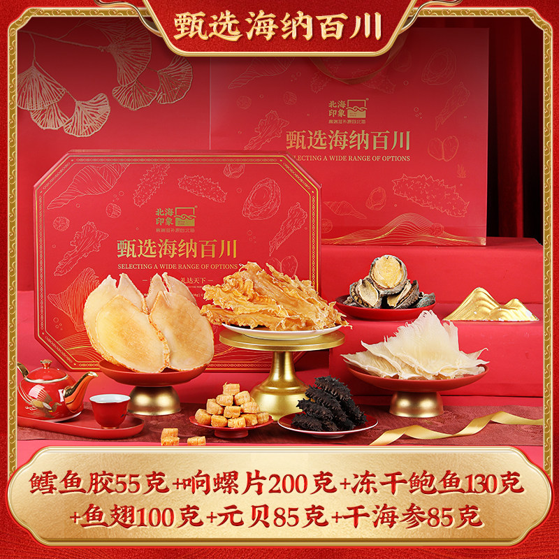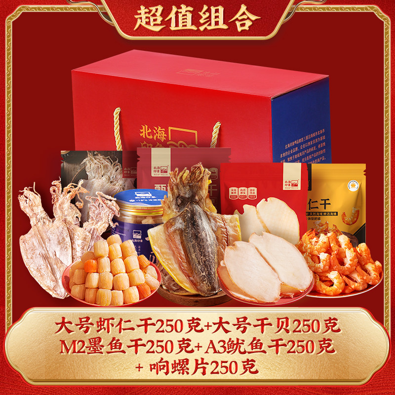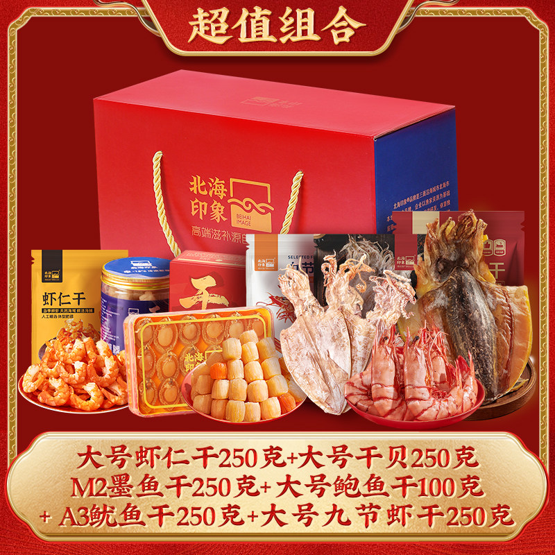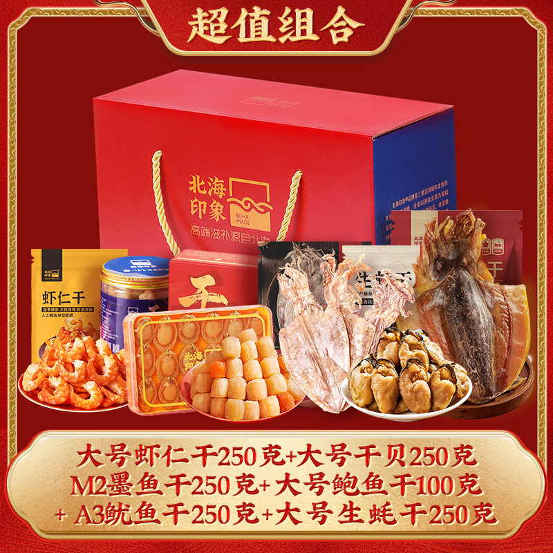 海鲜干货组合礼盒鲍鱼虾干虾米瑶柱干贝墨鱼鱿鱼干大礼包过年送礼