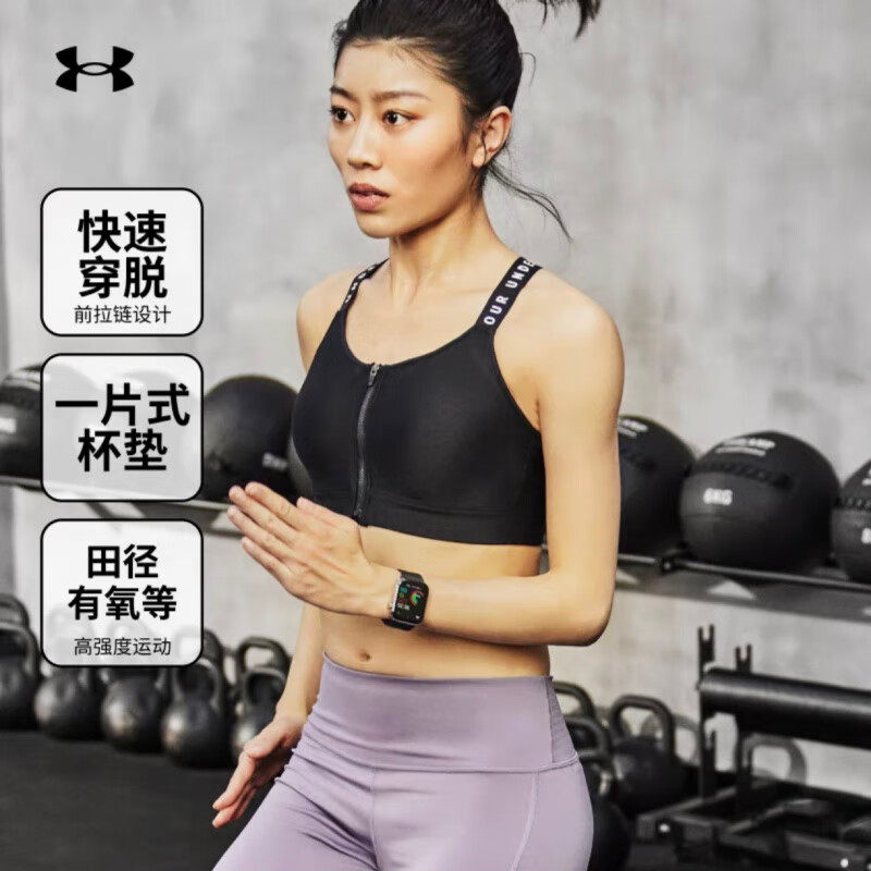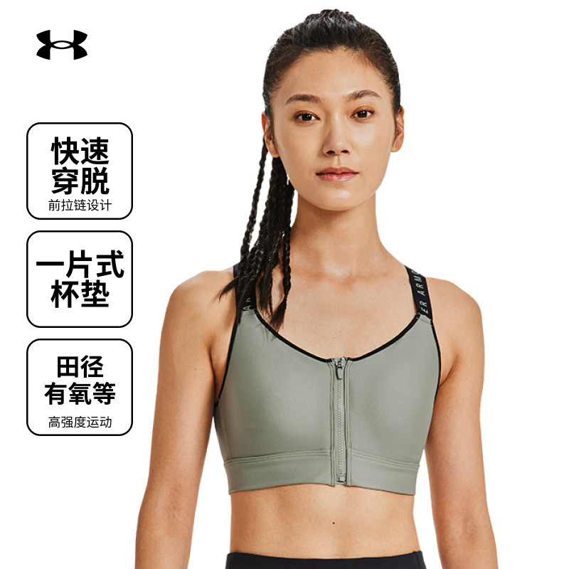 安德玛UA官方女子小8运动内衣防震高强度前拉链美背透气瑜伽文胸