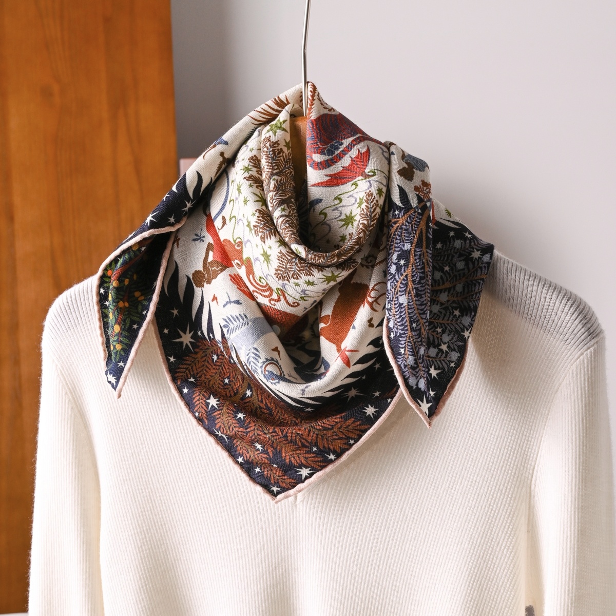 【俄尔甫斯的魅力】百搭桑蚕丝羊毛丝巾双面丝毛围巾中方巾披肩女