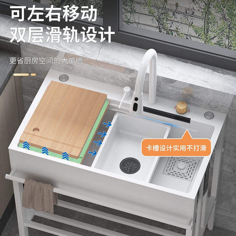 家用白色洗菜盆大单槽厨房水槽带支架落地式不锈钢洗碗池一体水池