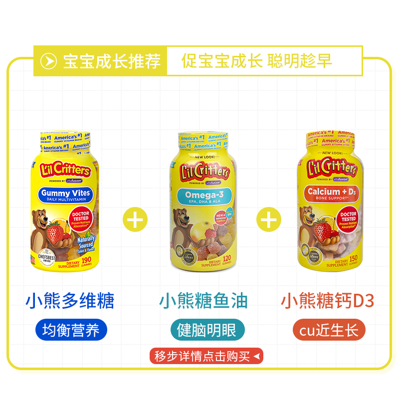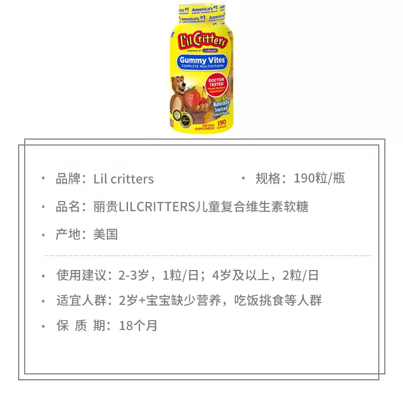 丽贵小熊糖儿童复合维生素果汁软糖宝宝多种营养维c补锌糖果190粒
