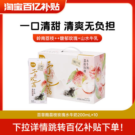 百菲酪山予系列荔枝玫瑰水牛奶200ml*10盒早餐牛奶