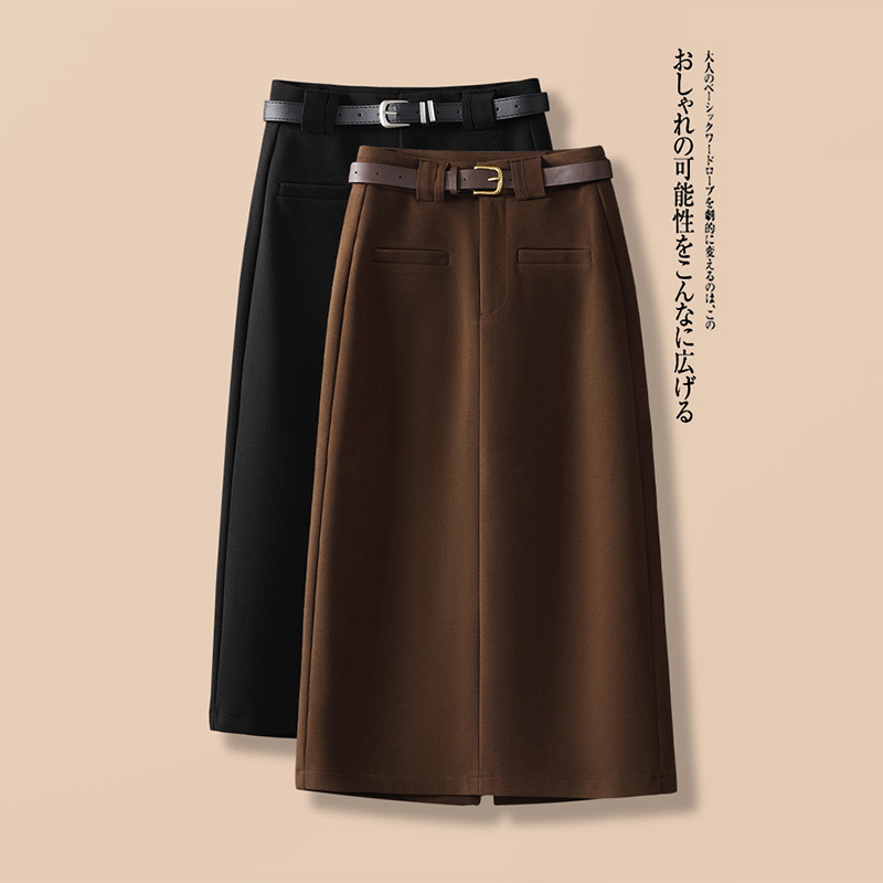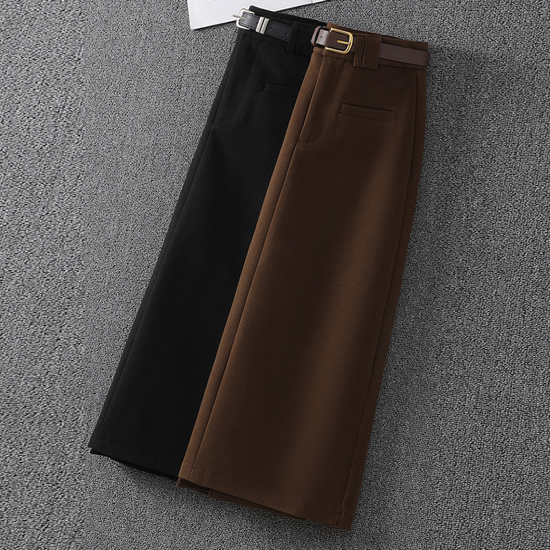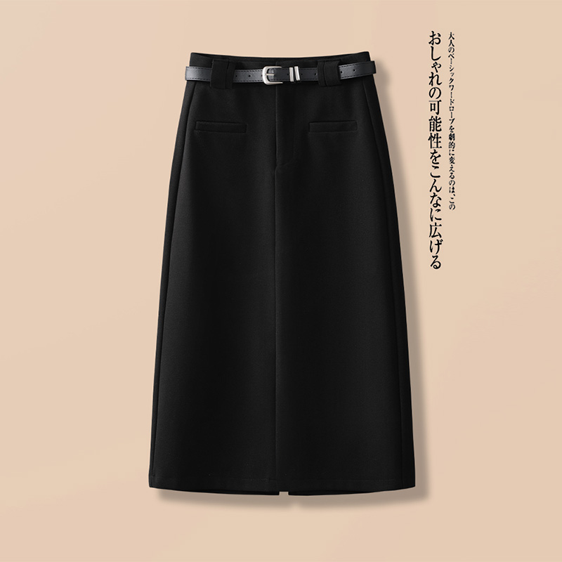 毛呢黑色半身裙女2025早秋新款高腰显瘦一步包臀裙中长款