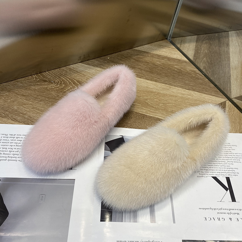 水貂毛外穿加绒真皮平底毛毛鞋女