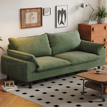 政府补贴复古绿色灯芯绒沙发简约小户型客厅公寓可拆洗三人位沙发