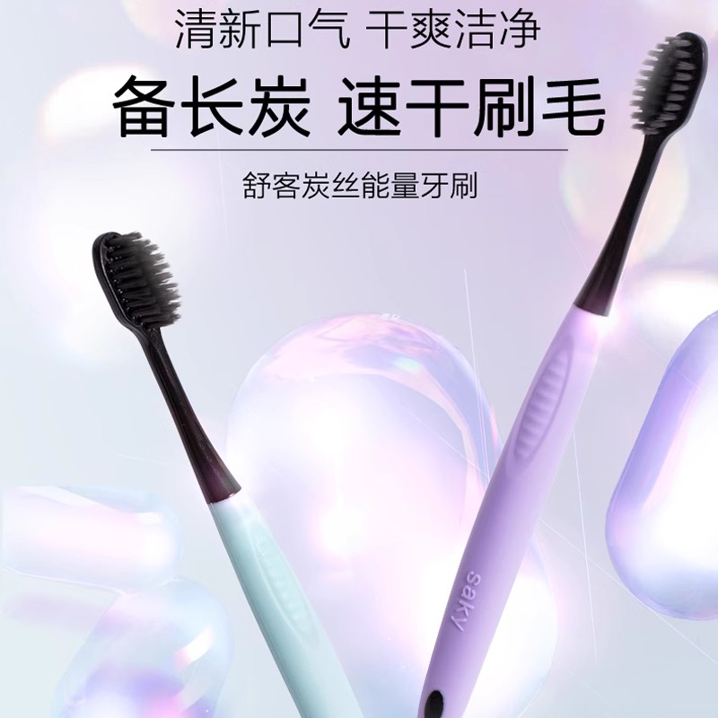舒客碳丝牙刷软毛牙刷情侣成人男女家庭装家用2支装洁牙牙刷正品