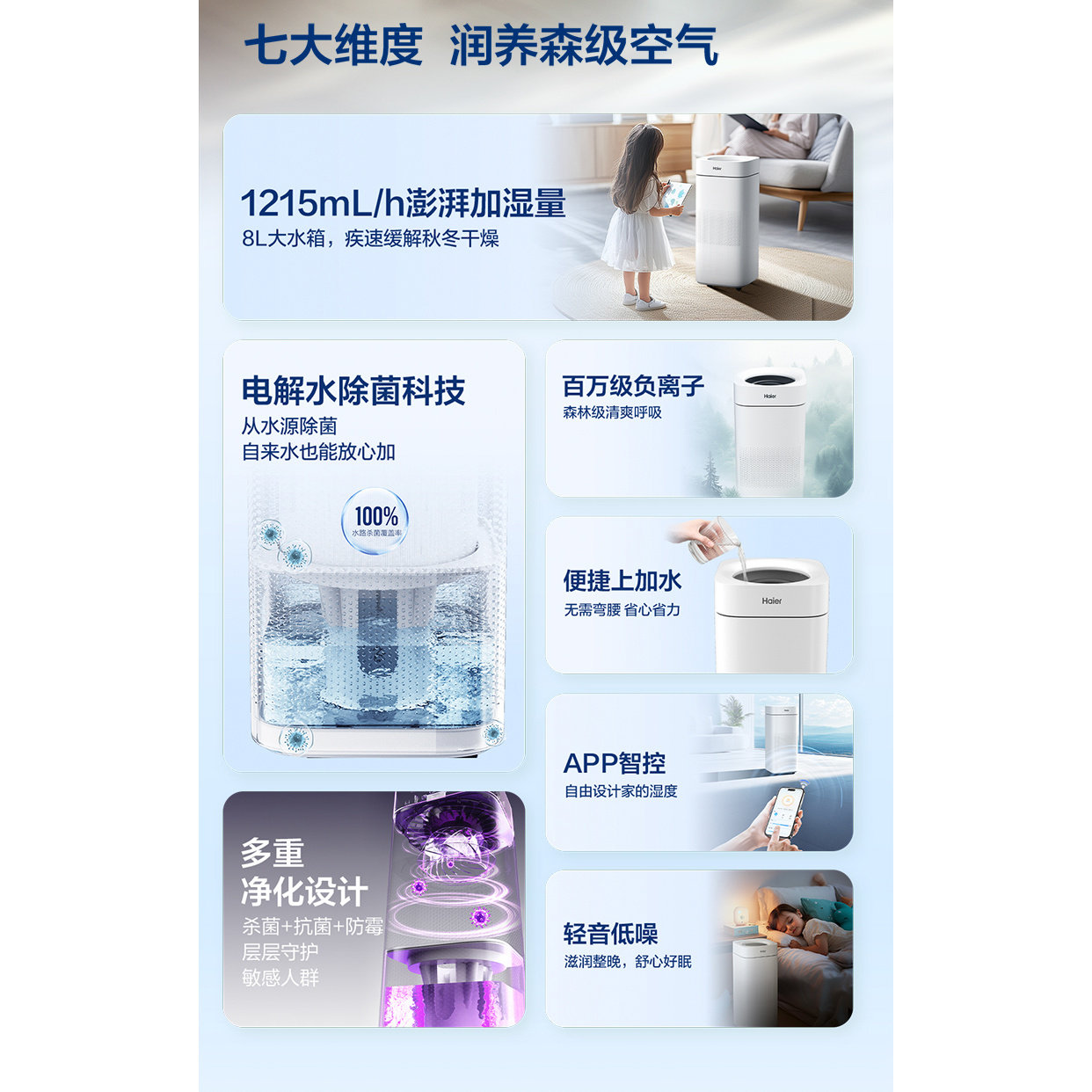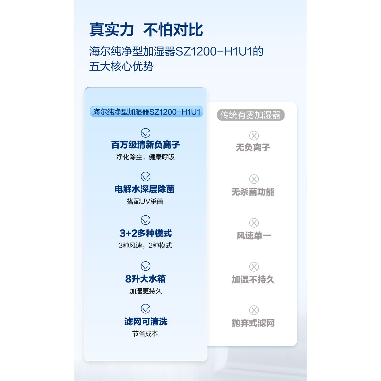 海尔无雾加湿器除菌静音孕妇婴儿负离子净化SZ1200-H1U1加湿机