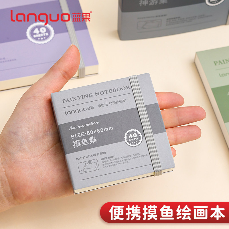 蓝果摸鱼本可撕绘画本水彩颜料本圆珠笔手帐笔丙烯马克笔专用儿童画画本空白摸鱼集迷你小巧便携随身手绘本