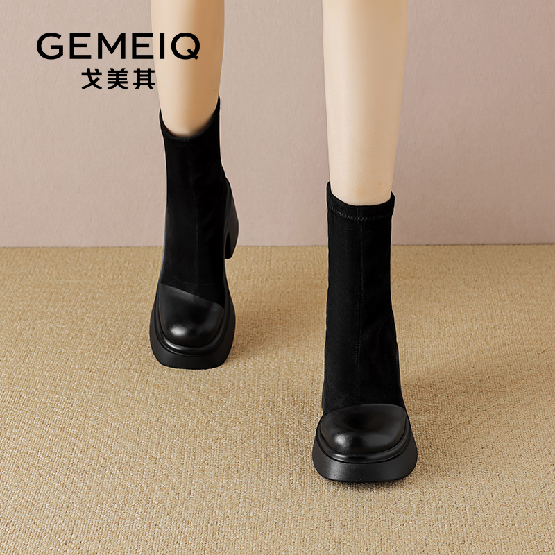 戈美其弹力袜靴子女舒适春秋新款单靴针织增高厚底高跟洋气小短靴