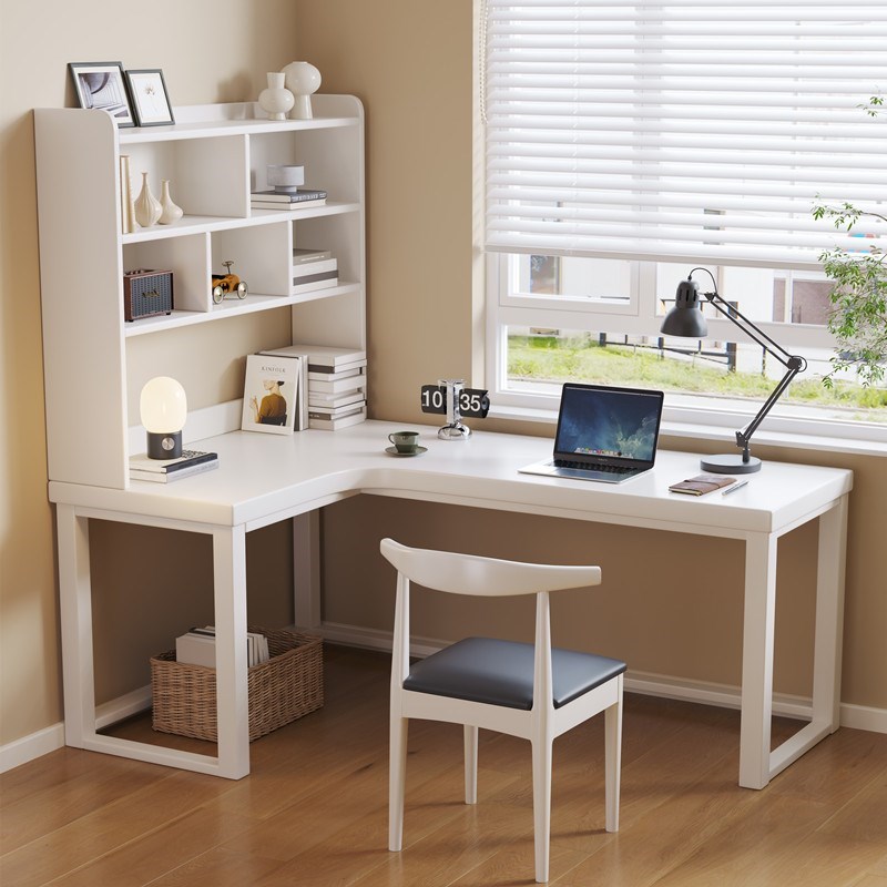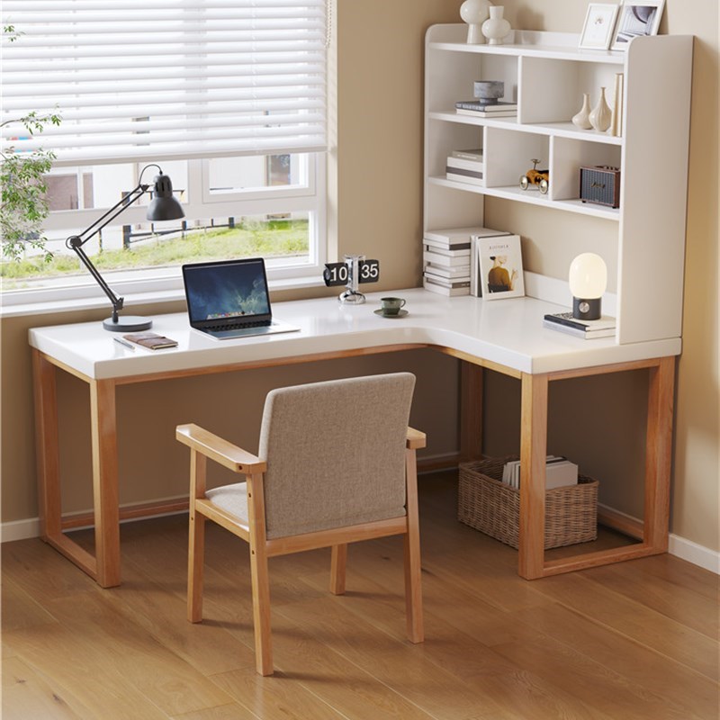 实木转角书桌书架一体组合7L型电脑桌家用卧室飘窗拐角书桌学习桌